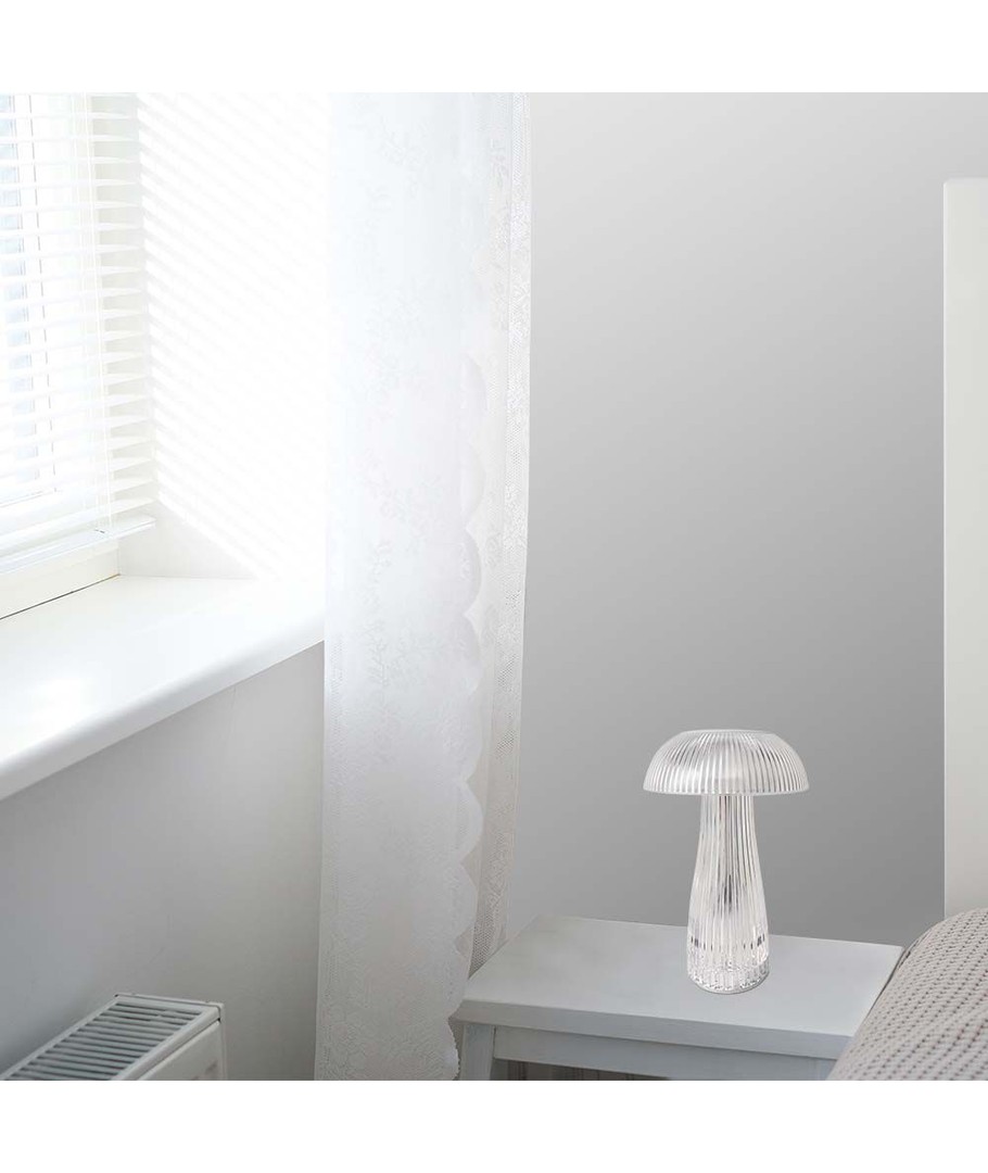 Denna LED bordlampa är den perfekta blandningen av funktionalitet och stil. Med ett transparent hölje och kompakt design passar den in i varje rum i ditt hem.