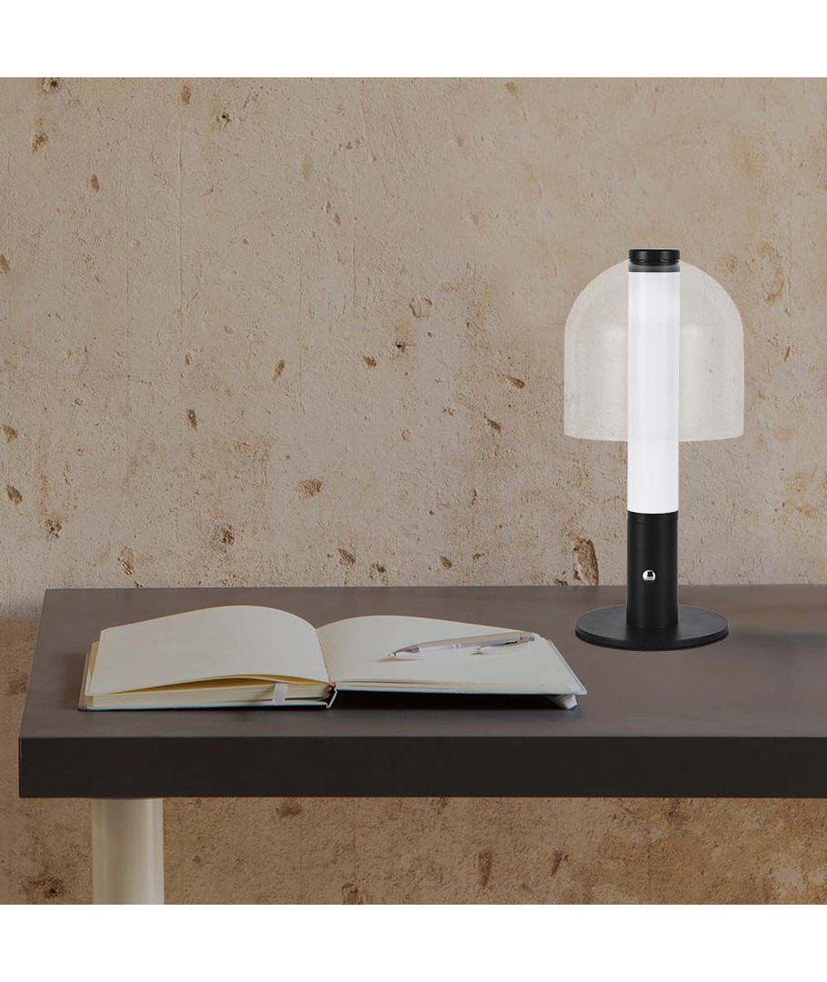 Upptäck en perfekt kombination av design och funktionalitet med denna eleganta LED bordslampa. Med sina mått på 300 x 140 mm och en samtida stil med svart och transparent glas hus, passar den utmärkt i både moderna och klassiska interiörer.