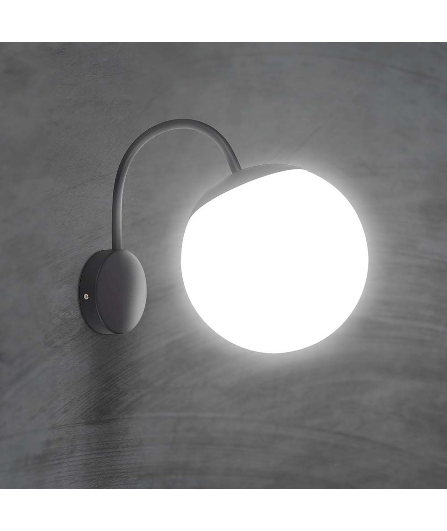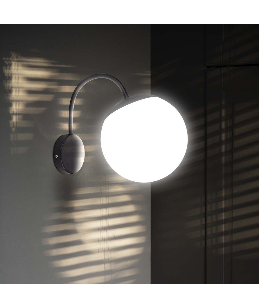 Denna vägglampa är en perfekt kombination av stil och funktionalitet, utformad för att ge ditt hem en modern och stilren känsla. Med sin mattsvarta yta och opala plastglob passar den in i de flesta inredningar, både inomhus och utomhus.