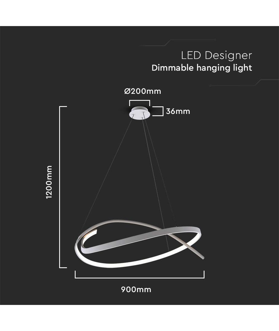 Designad för att passa moderna interiörer, är lampan tillverkad i metall med en elegant vit finish. Dimensionerna är 1200 x 900 mm, vilket gör den till en perfekt mittpunkt över matsalsbordet eller i vardagsrummet.
