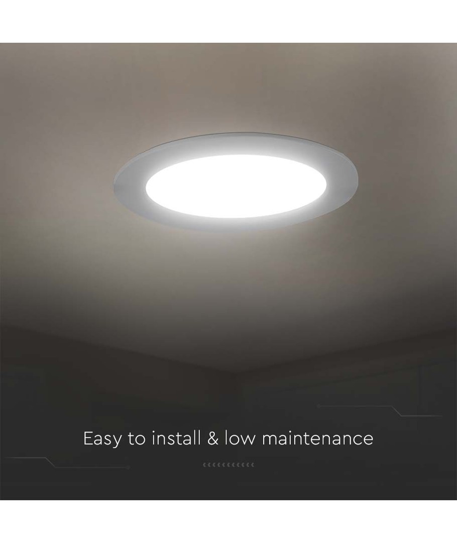 Den runda designen gör att denna panel passar bra in i de flesta tak- och vägginstallationer. Trots sin kompakta storlek erbjuder den hög ljuskvalitet och är lätt att installera med sin rekommenderade hålstorlek på 80 mm.