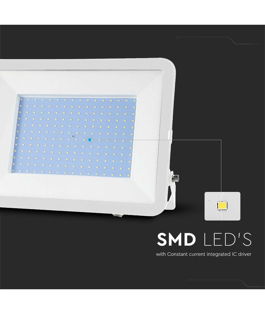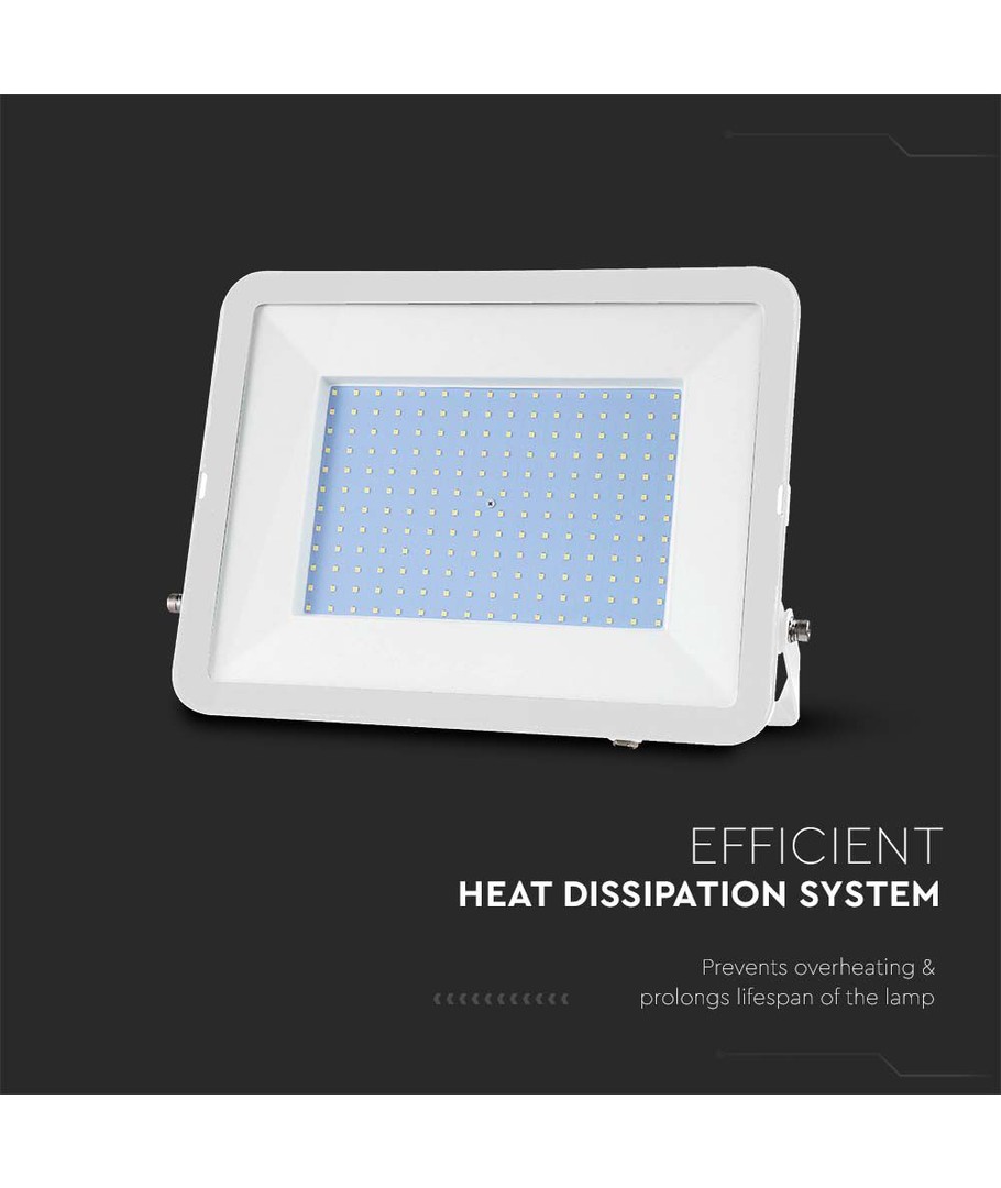 Strålkastaren avger kallvitt ljus (6500K), vilket ger ett svalt och klart ljus med en blåaktig nyans. Denna typ av ljus är perfekt för applikationer som lackering, akvarier och speciell dekoration.