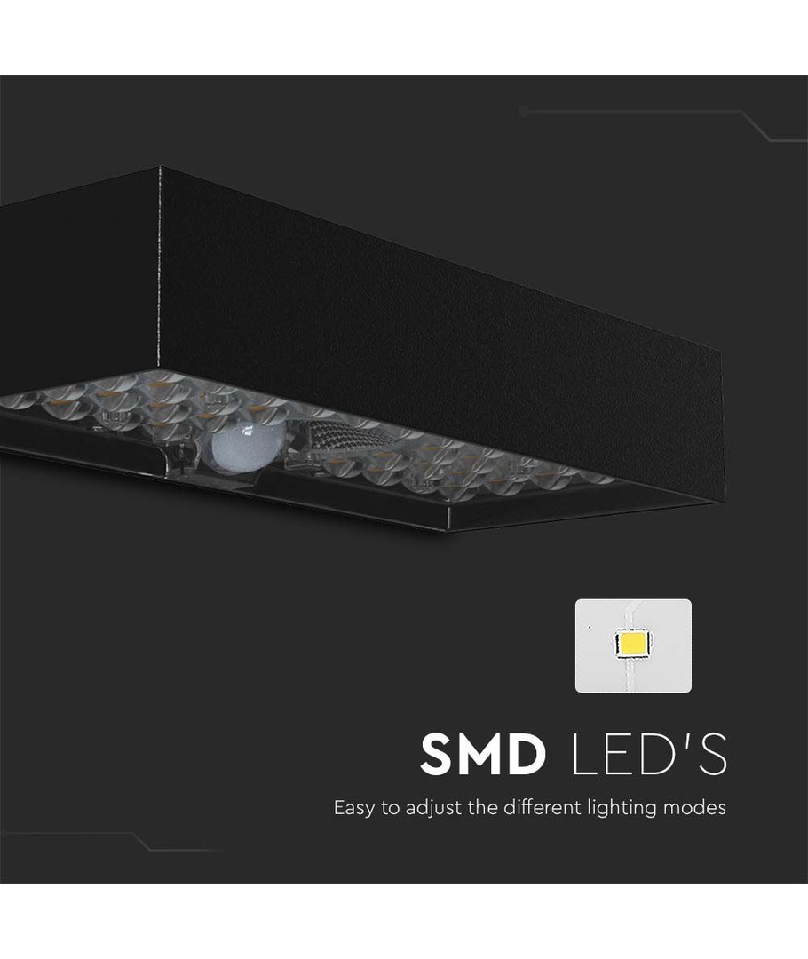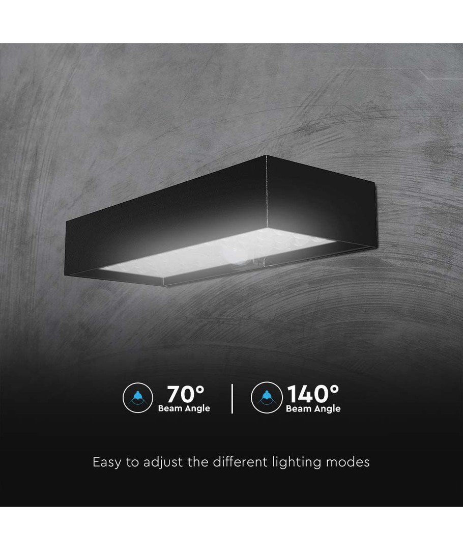 Med en effekt på 6W, erbjuder denna solpanelvägglampa belysning av hög kvalitet, perfekt för utomhusmiljöer. Dess ljusstyrka på 900 lm och den breda spridningen på 140/70 grader säkerställer en jämn och omfattande fördelning av ljuset.