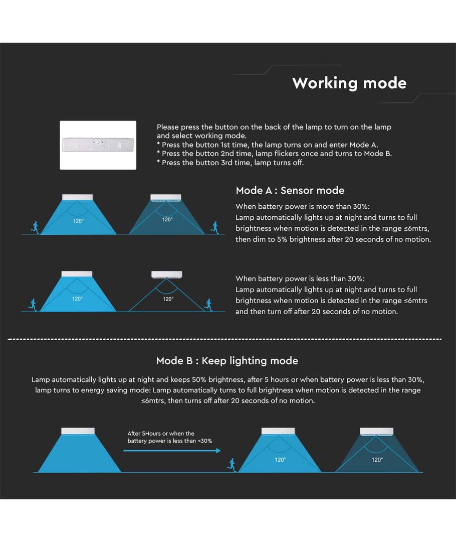 | Yderligere bemærkninger | Battery: 3.7V, Lithium 3000mAh Battery. Charging time: 8-10 Hours Sunlight Charging. Working time: Min. 4 Nights. Sensor type: PIR. Sensor distance: 6M. |