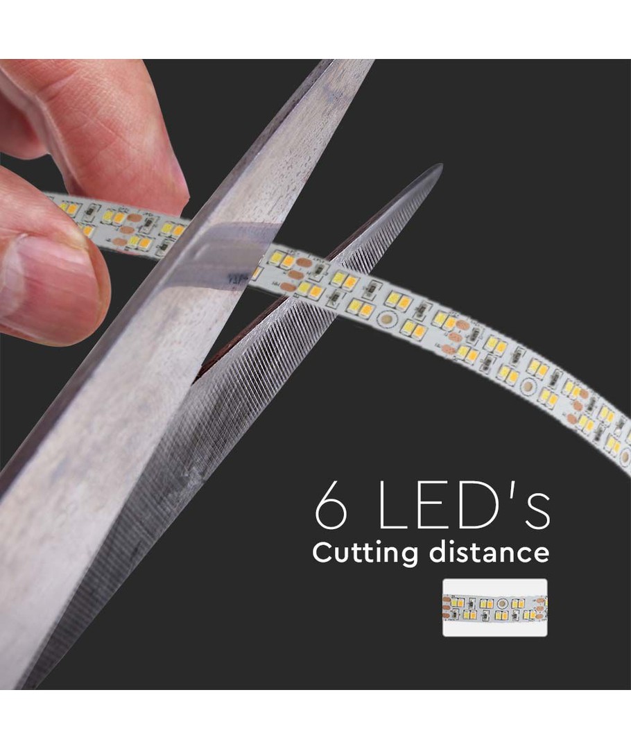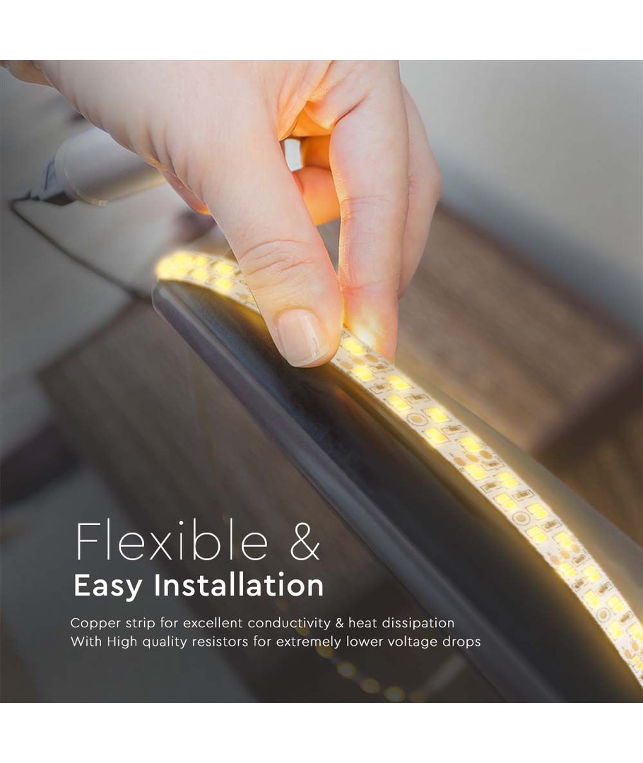 Denna flexibla LED-strip erbjuder hög ljuskvalitet och är utformad för att ge ett naturligt och klart ljus. Med en bred spridningsvinkel på 120 grader garanterar den en jämn belysning över hela området.