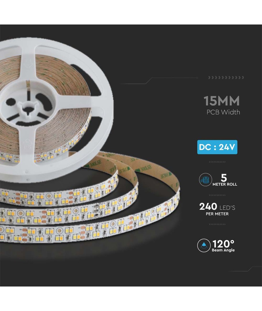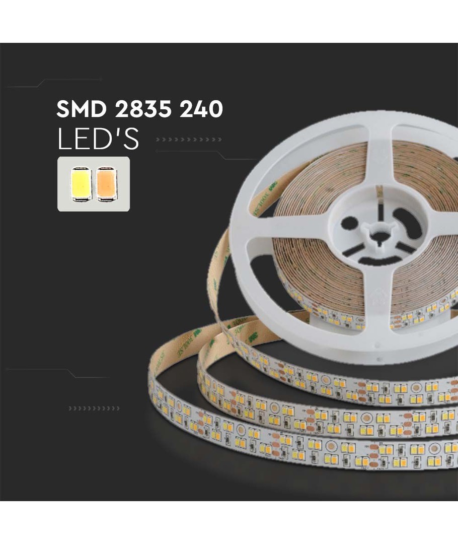 Stripen är försedd med 240 LED-lampor och förbrukar endast 21W, vilket gör den både energieffektiv och miljövänlig. Du får en lång sträcka med jämnt ljus, perfekt för både inomhusdekor och kommersiella installationer.