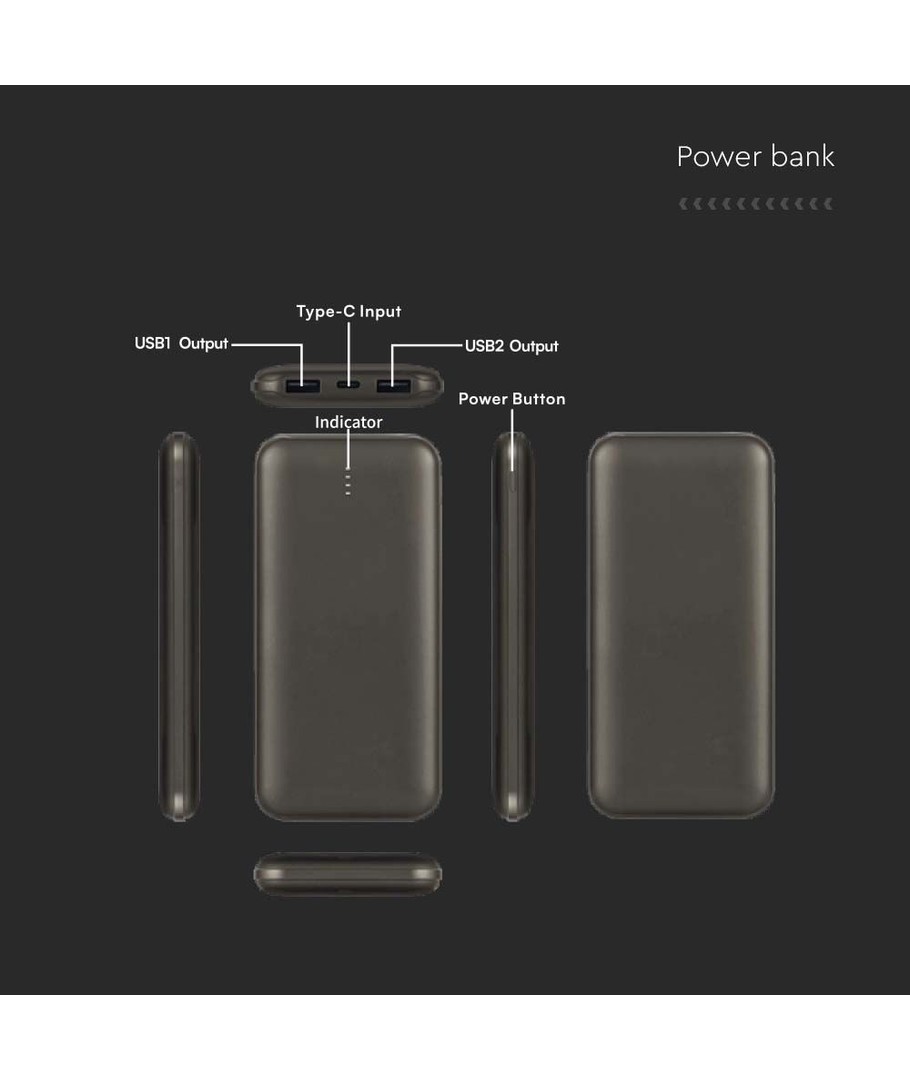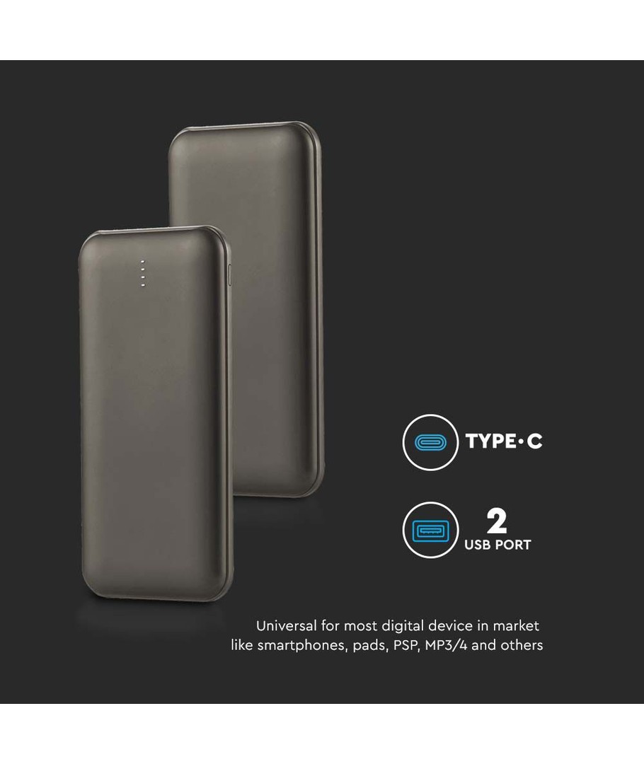 10000mAh Power Bank - 2A, 30cm Type C Kabel, Grå V-TAC Expandera