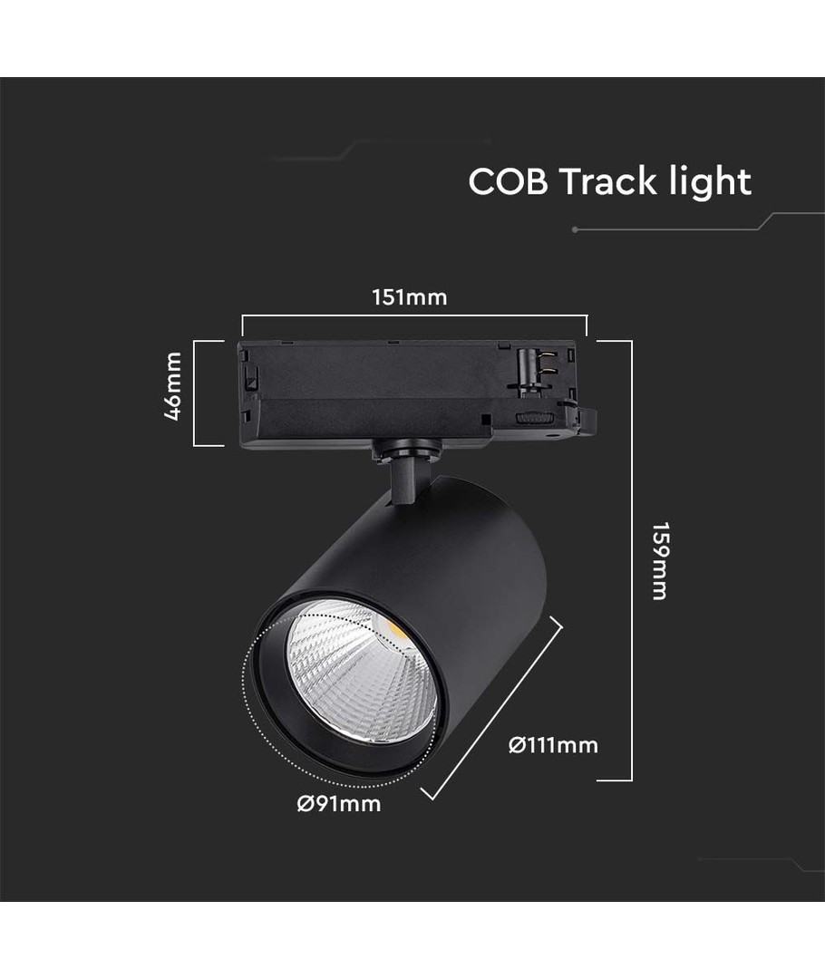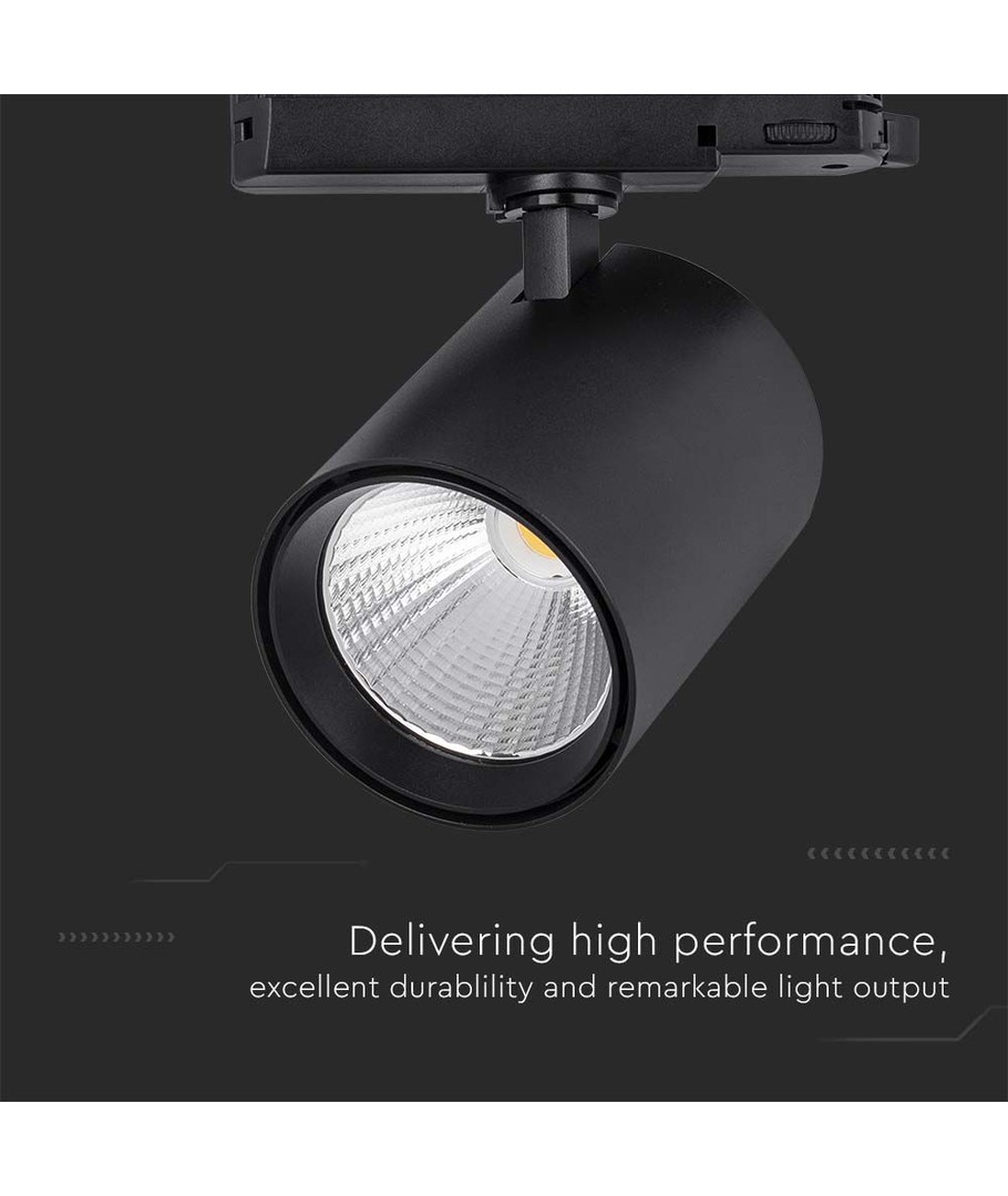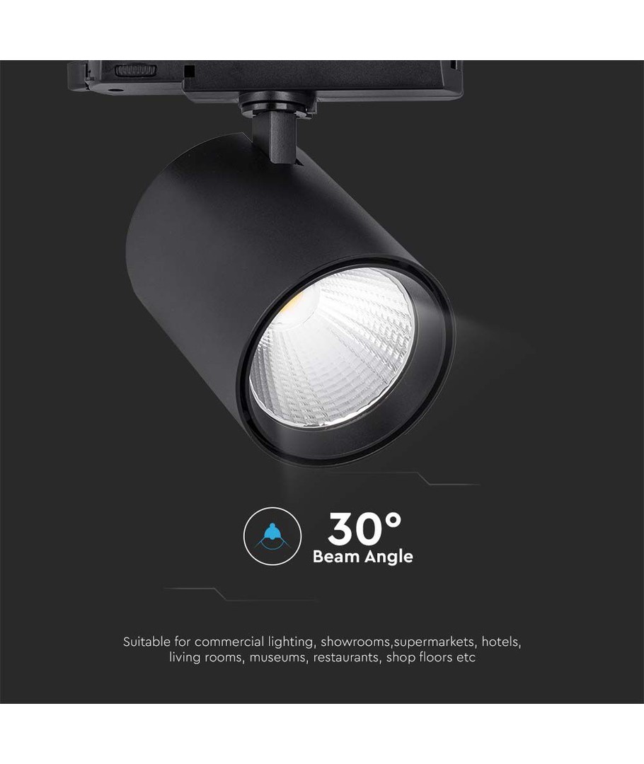 Denna kraftfulla skenspot erbjuder en effekt på 35W och är designad för att ge ett fokuserat ljus där det behövs. Med en ljusstyrka på 3000 lm och en strålvinkel på 30 grader säkerställer den kontrollerad belysning som passar perfekt för en mängd olika miljöer.