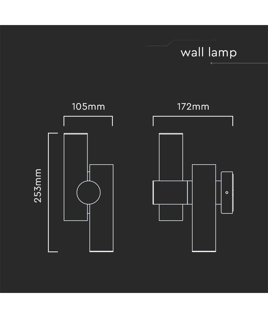 Med dimensionerna 253 x 105 x 172 mm har denna väggspot en kompakt design som gör den lätt att placera utan att kompromissa med ljusstyrkan. Dess IP44-klassificering betyder att den tål fuktig luft och vattenstänk från framsidan, vilket gör den lämplig för användning i fuktiga områden.