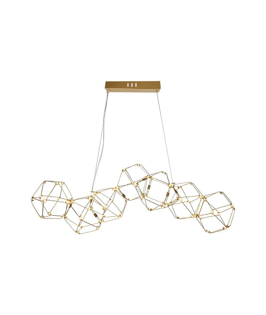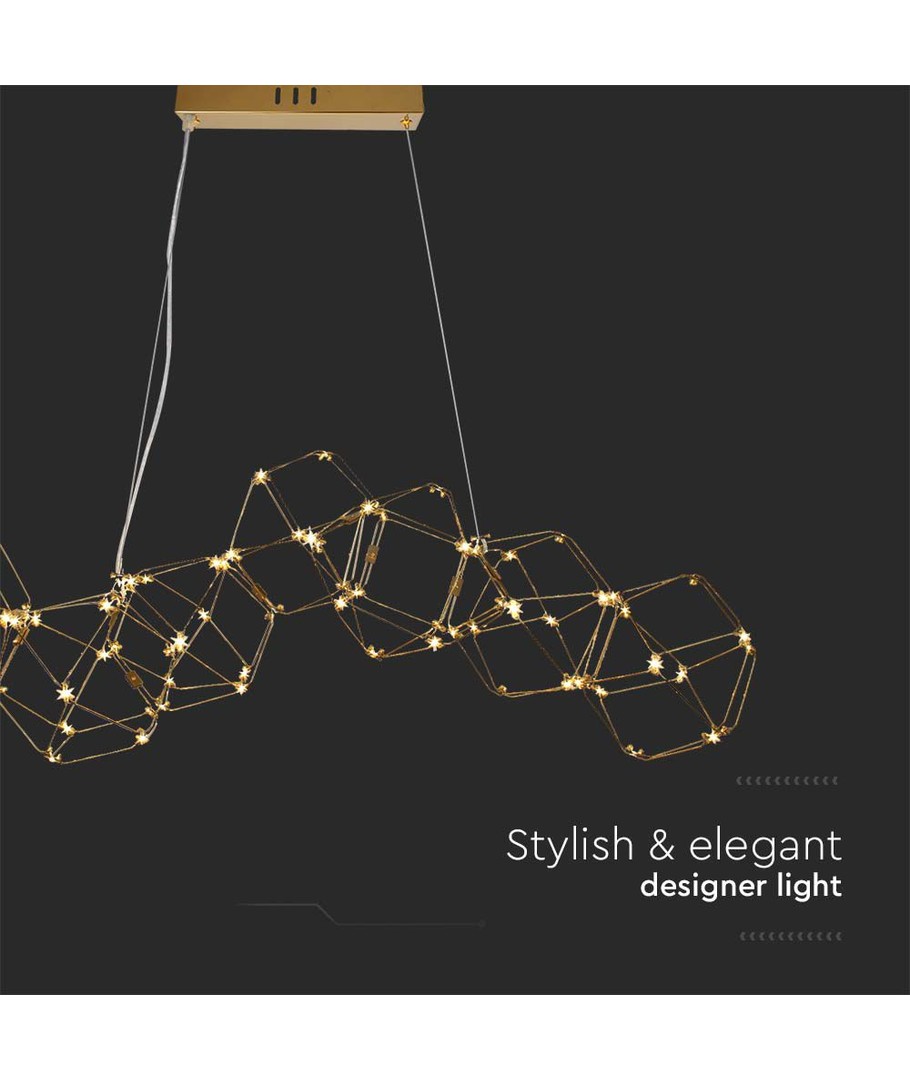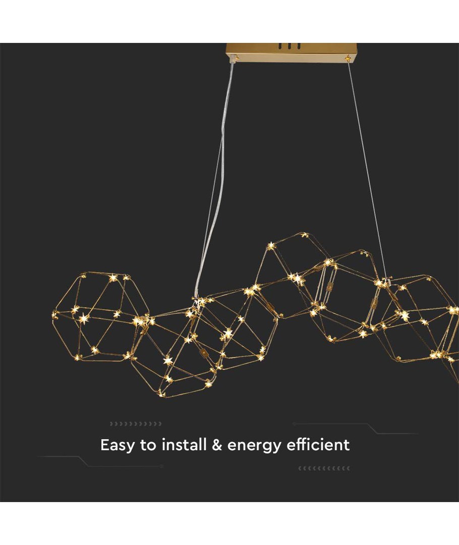 Med denna hänglampa får du en kombination av estetisk design och funktionell belysning. Det dekorativa guldhuset ger en modern touch, medan varmvit ljusfärg bidrar med komfort och lugn. Perfekt för dig som vill förena stil och funktion i hemmets olika miljöer.