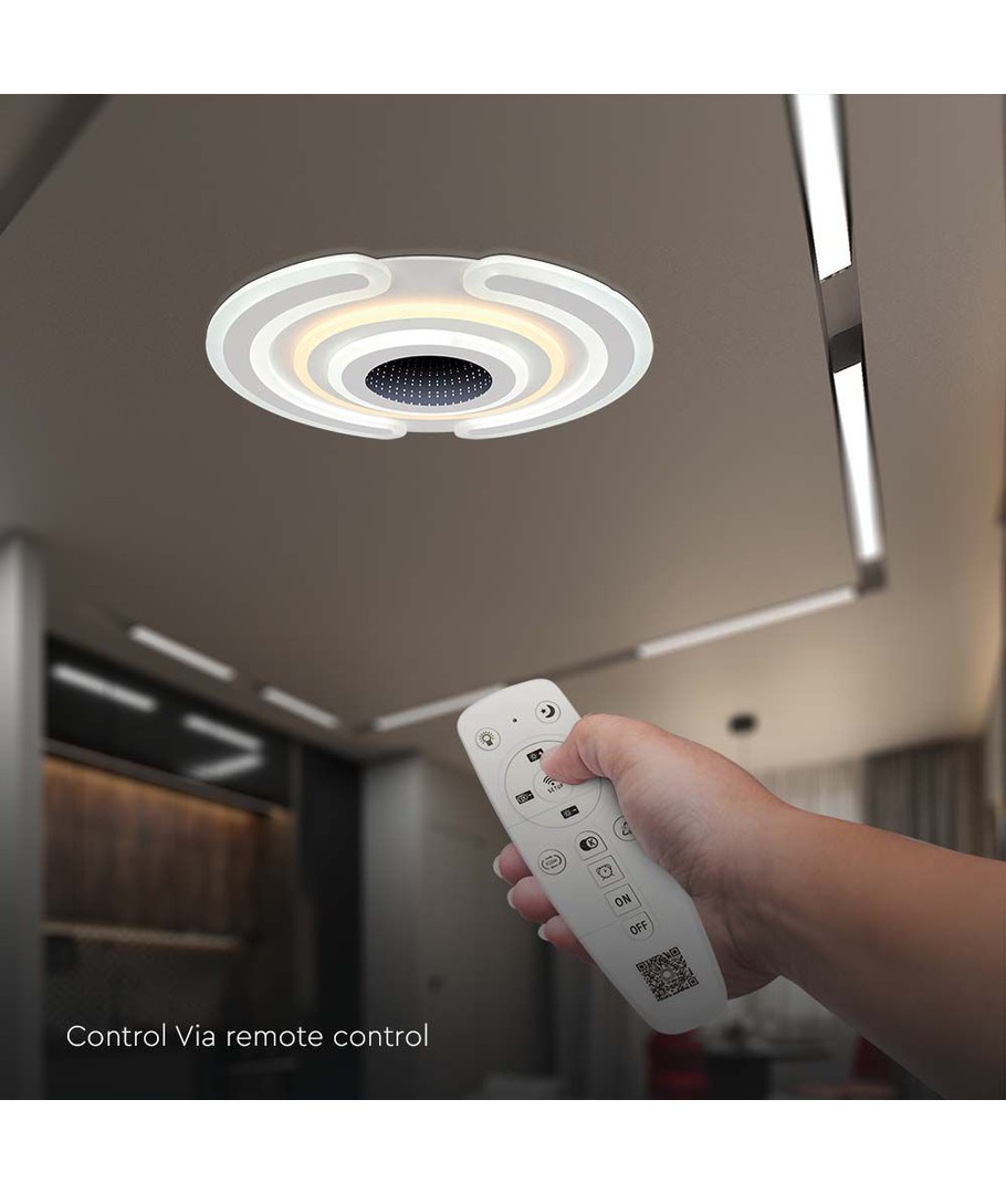 Denna smarta dekorativa taklampa kombinerar funktionalitet med estetik. Oavsett om du vill lysa upp ett rum för vardagliga aktiviteter eller skapa en dämpad atmosfär för en mysig kväll, har du kontroll över ljusintensiteten. Med enkel fjärrstyrning kan du justera ljuset utan att röra dig från din plats.