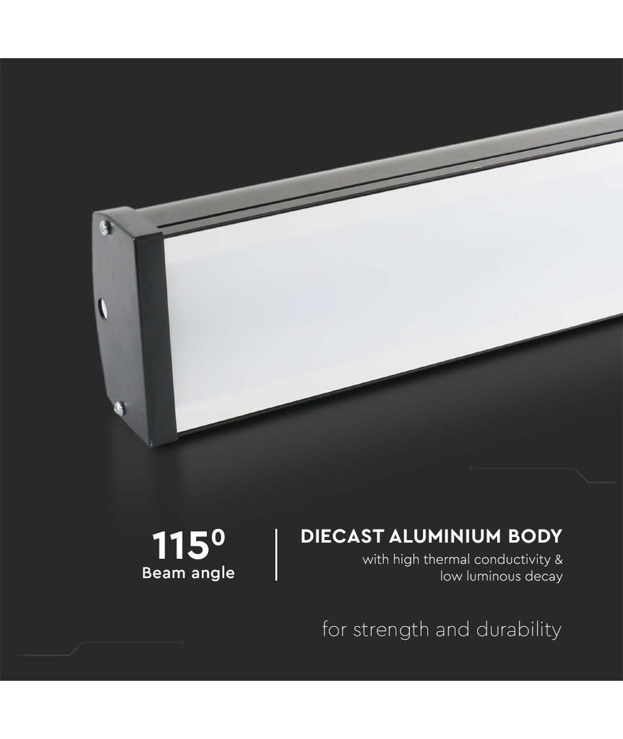 Den linjära highbay 100W är det perfekta valet för dig som behöver ett kraftfullt, tillförlitligt och energieffektivt belysningsalternativ för stora utrymmen med specifika belysningskrav.