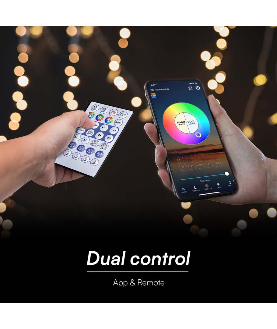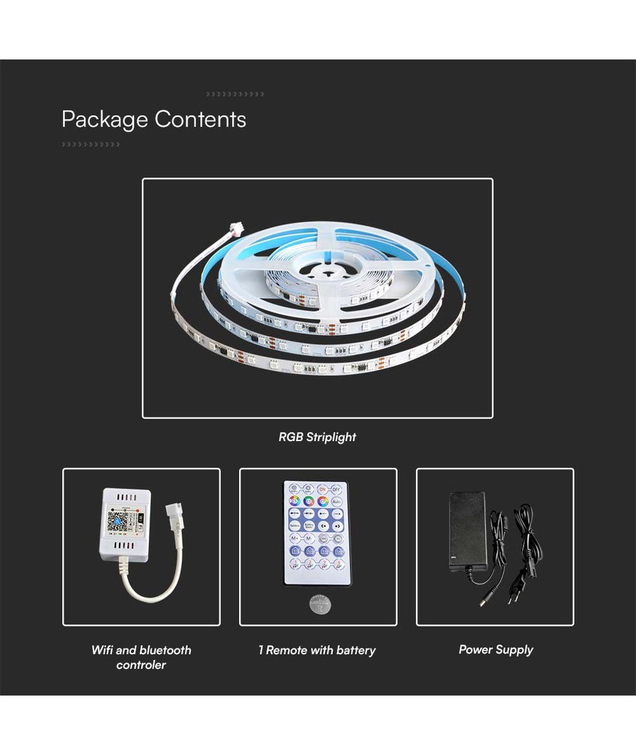 Upplev imponerande belysning med vår RGB LED-remsa som tillför en magisk atmosfär till alla dina inomhusutrymmen. Med sina många funktioner och högkvalitativa design blir ljussättningen både mångsidig och estetiskt tilltalande.
