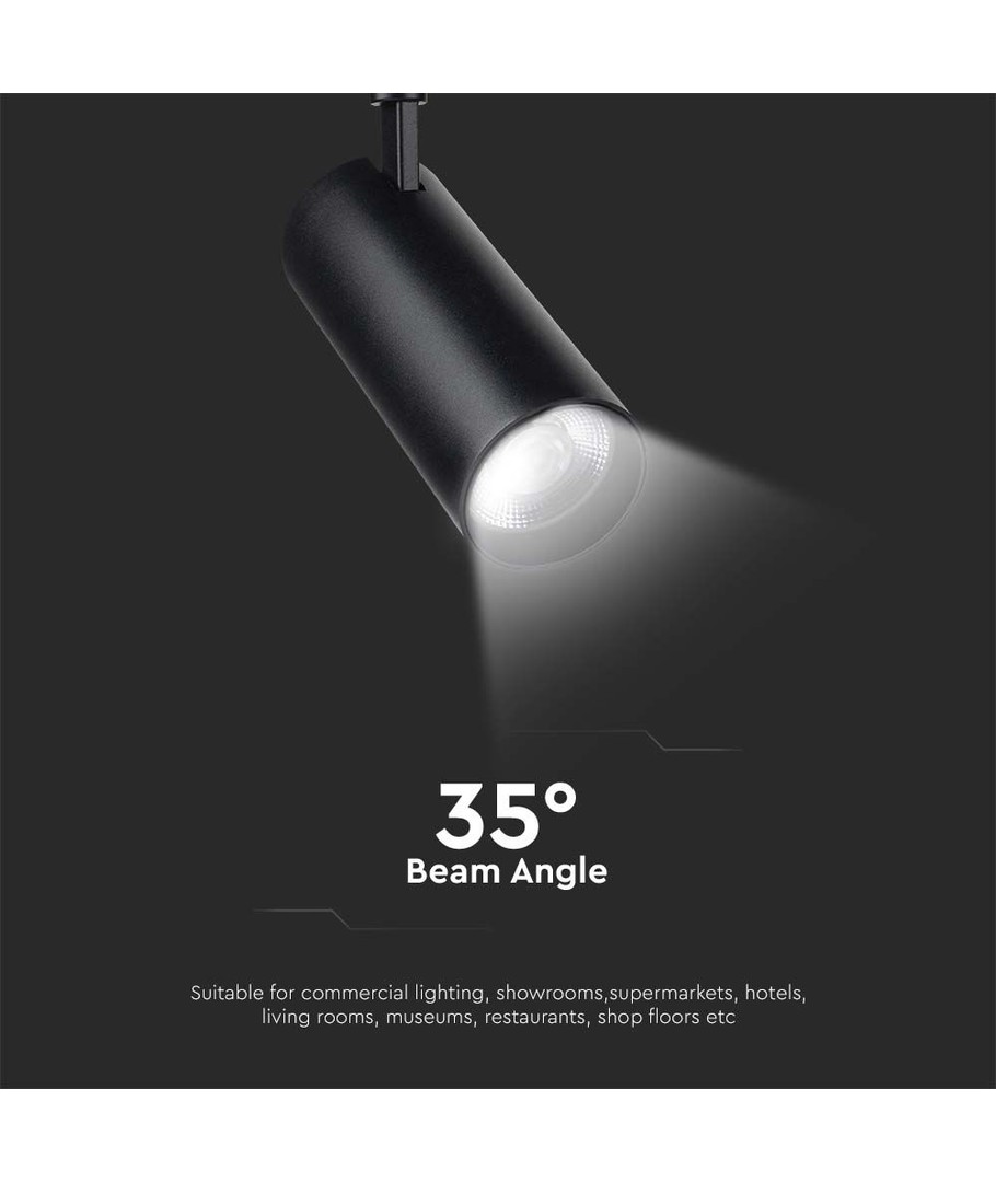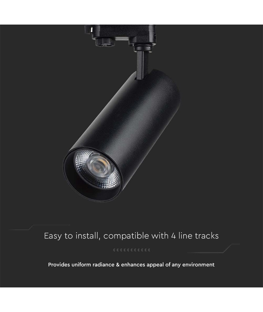 Med en ljusstyrka på 3150 lm och en fokuserad ljusvinkel på 35 grader, är denna skenspot idealisk för att betona specifika områden och föremål i ditt utrymme. Den extra höga ljuskvaliteten med ett RA-värde på 90-95 säkerställer att färgerna återges naturligt och livfullt, vilket gör den perfekt för miljöer som kräver precision och estetik.