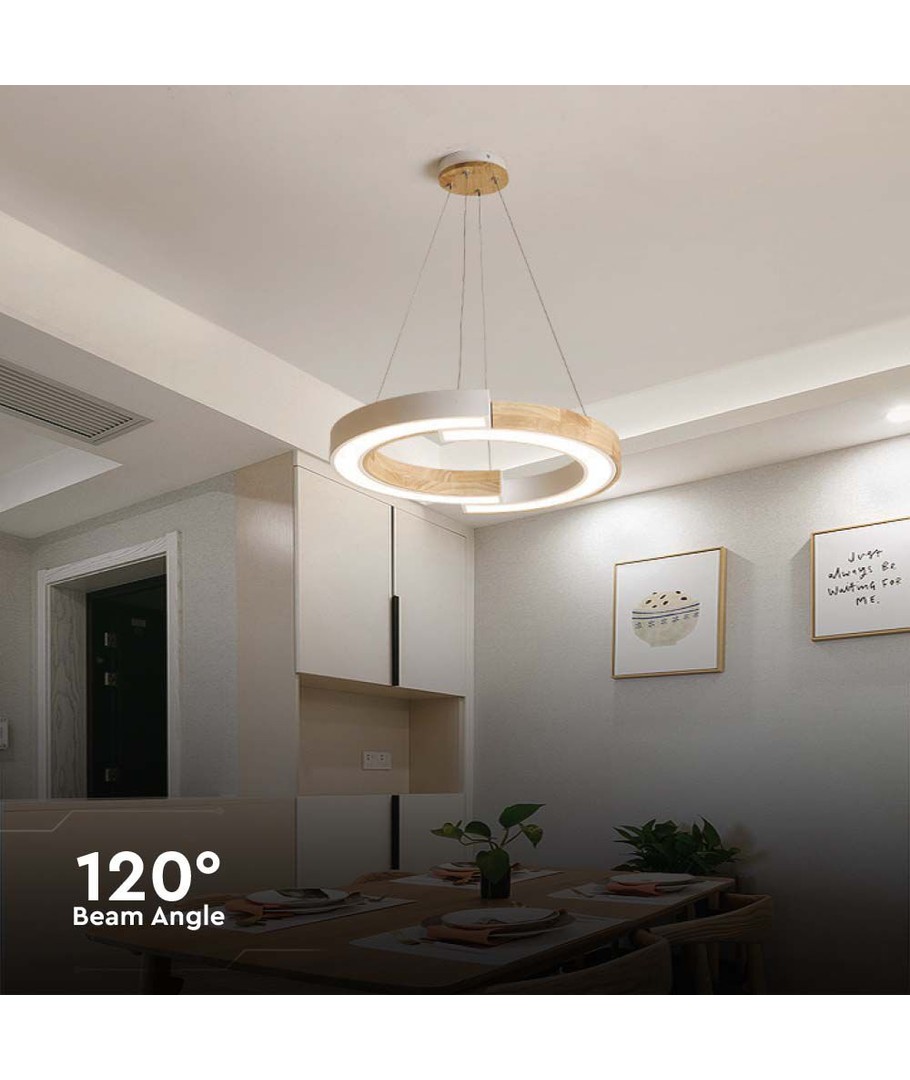Lampans eleganta design med vit finish och trädetaljer gör den till en tidlös inredningsdetalj. Dess dimensioner är 1120 x 370 x 430 mm, vilket gör den både imponerande och praktisk.