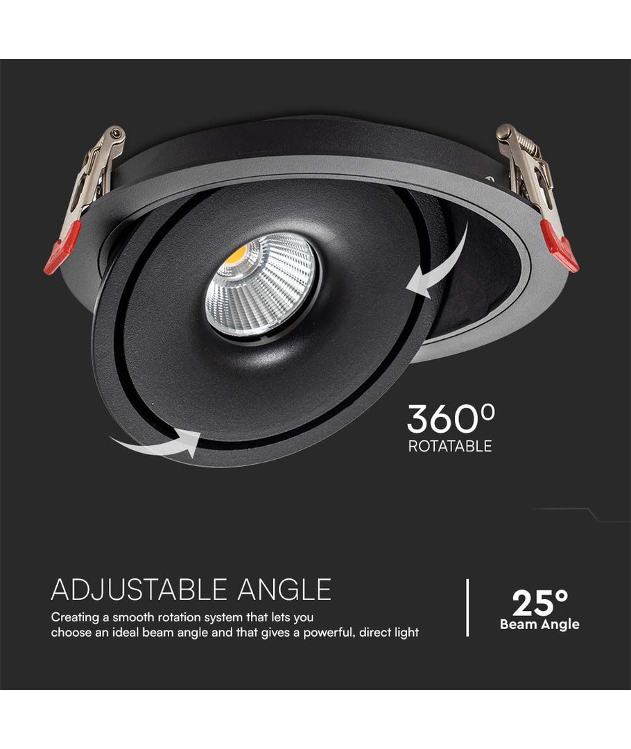 Huvudfunktioner:Denna downlight har dimensioner på 165 x 50 mm och en hålstorlek på 150 mm, vilket gör den lätt att installera i olika tak. Med sin stilrena svarta hus design, passar den perfekt in i moderna interiörer.