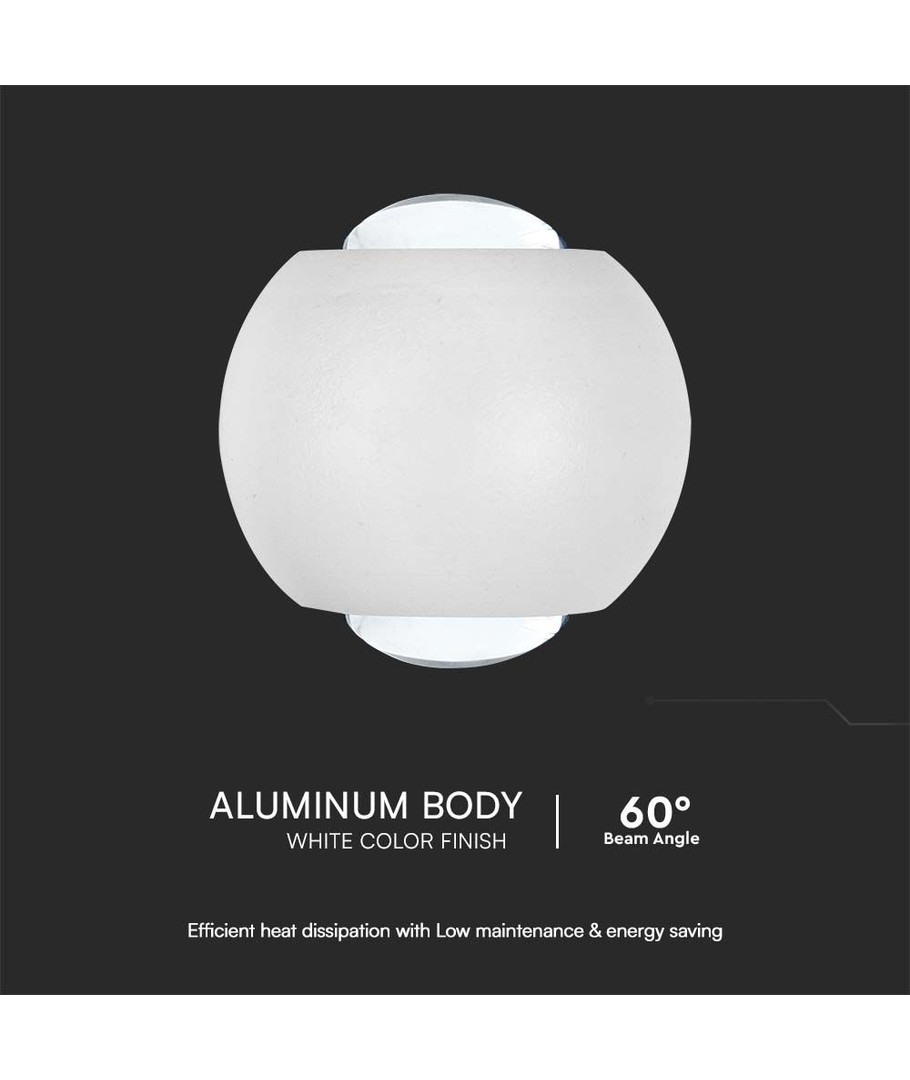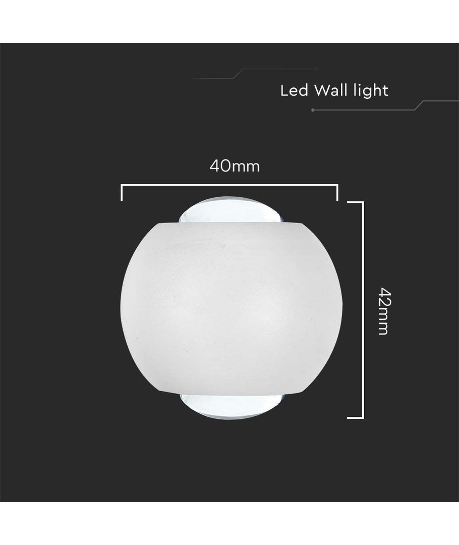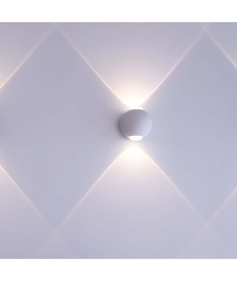 Den kompakta designen (42 x 40 mm) gör den enkel att installera och smälter lätt in i olika interiörer. Vägglampans vita hus ger den ett diskret och elegant utseende samtidigt som den är avancerad nog att tål fuktiga miljöer tack vare sin IP54-klassificering.