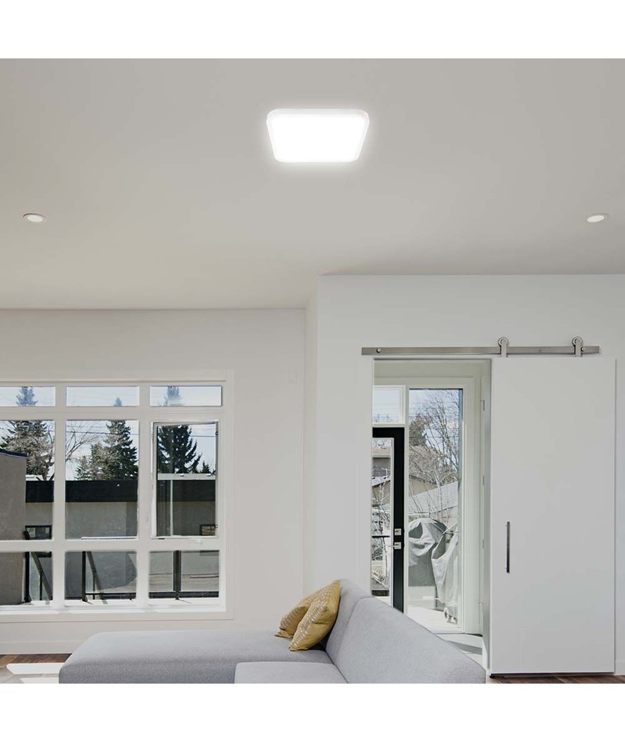 Med sina dimensioner på 420 x 65 x 420 mm passar kupollampan sömlöst i olika miljöer. Dess fyrkantiga design tillsammans med den eleganta vita ramen ger ett modernt och diskret utseende som kompletterar de flesta inredningar.