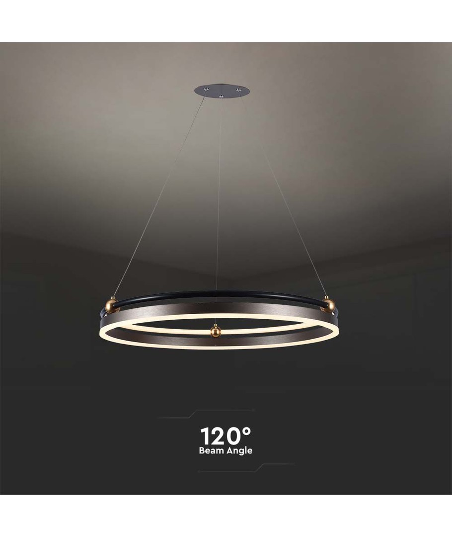 Lampan avger en ljusstyrka på 3600 lm och har en bred spridning på 120 grader. Detta säkerställer en jämn och vidsträckt belysning i rummet, som skapar en harmonisk atmosfär. Ljuskällan har en hög kvalitet med ett RA-värde på 80-85, vilket innebär att den återger färger på ett naturligt och vackert sätt.