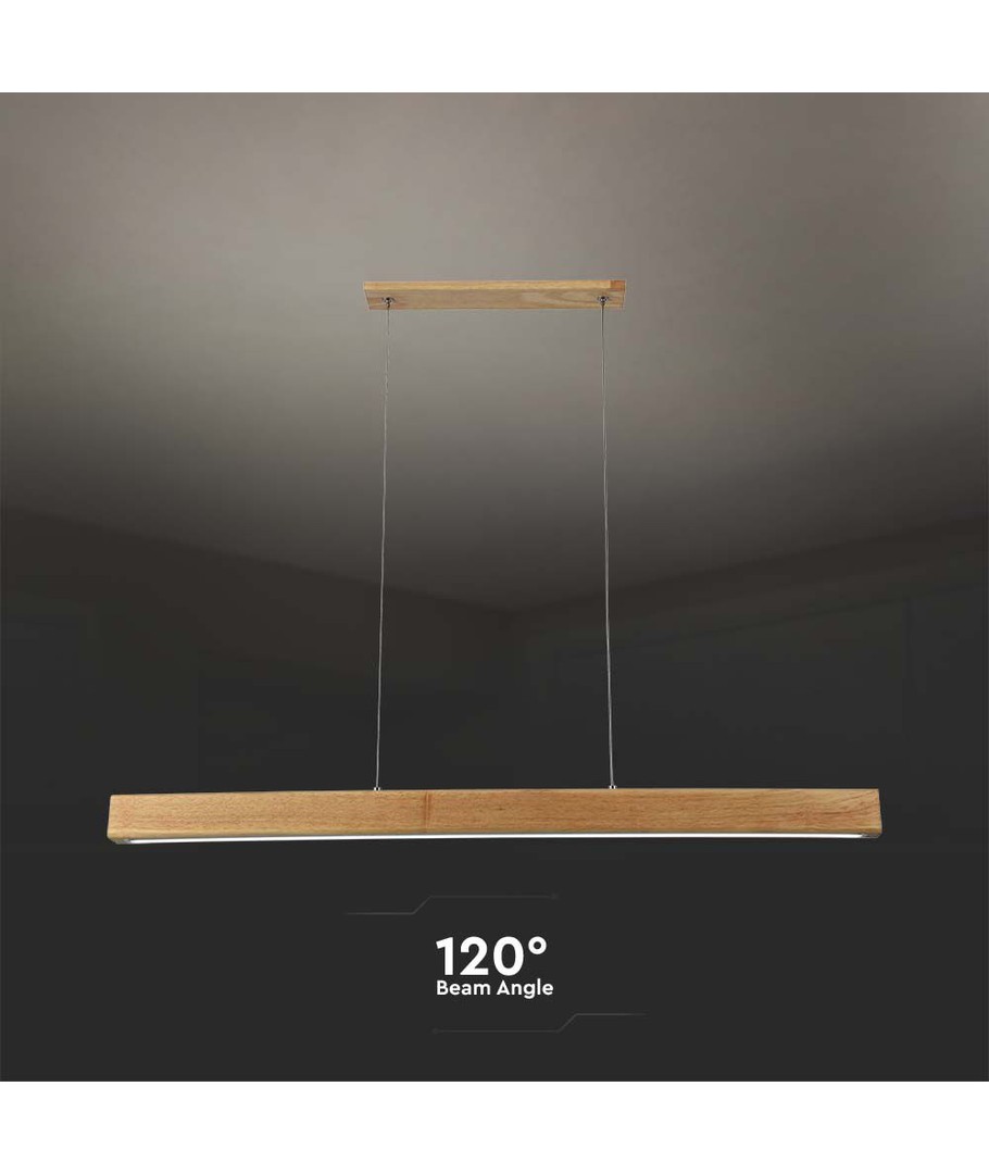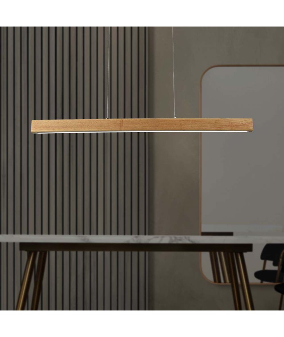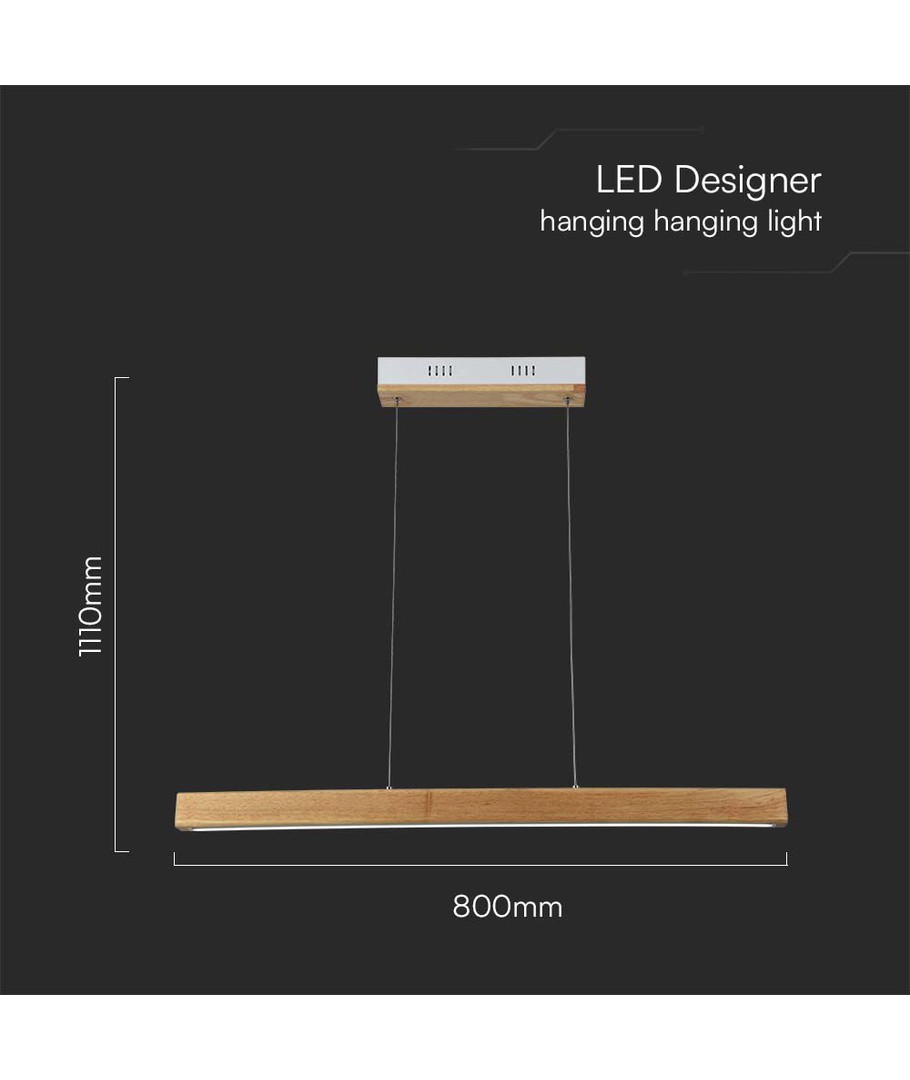 Lampans dimensioner är 1110 x 800 mm, vilket gör den till en iögonfallande detalj i rummet. Tillverkad med ett elegant trä hus, kombinerar den stil och funktionalitet. Med integrerad ljuskälla behöver du inte oroa dig för att installera separata glödlampor.