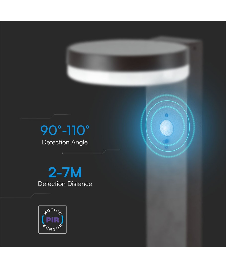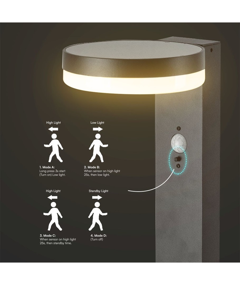Denna lampa är utrustad med en PIR-sensor som registrerar rörelse, vilket gör att belysningen enbart aktiveras när det behövs, vilket sparar ytterligare energi. Dessutom, med den inbyggda solcellstekniken tar lampan vara på dagsljus för att ladda, vilket innebär ingen onödig driftskostnad.