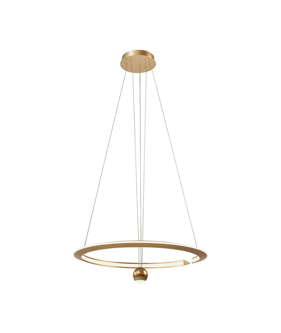 Med en elegant borstad guld-finish, blir denna pendellampa en sofistikerad touch till vilket rum som helst. Dess dimensionsmått på 1200 x 620 mm gör den till ett iögonfallande stycke utan att vara överväldigande.