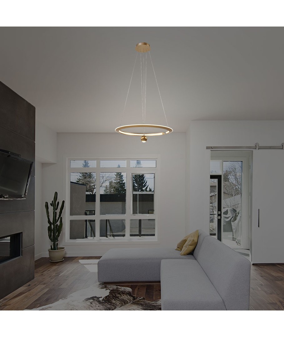 Förvandla dina utrymmen med denna eleganta pendellampa som kombinerar stil och funktionalitet på ett enastående sätt. Med sin borstade guld-finish och imponerande design, blir den ett perfekt tillskott i varje modernt interiör.