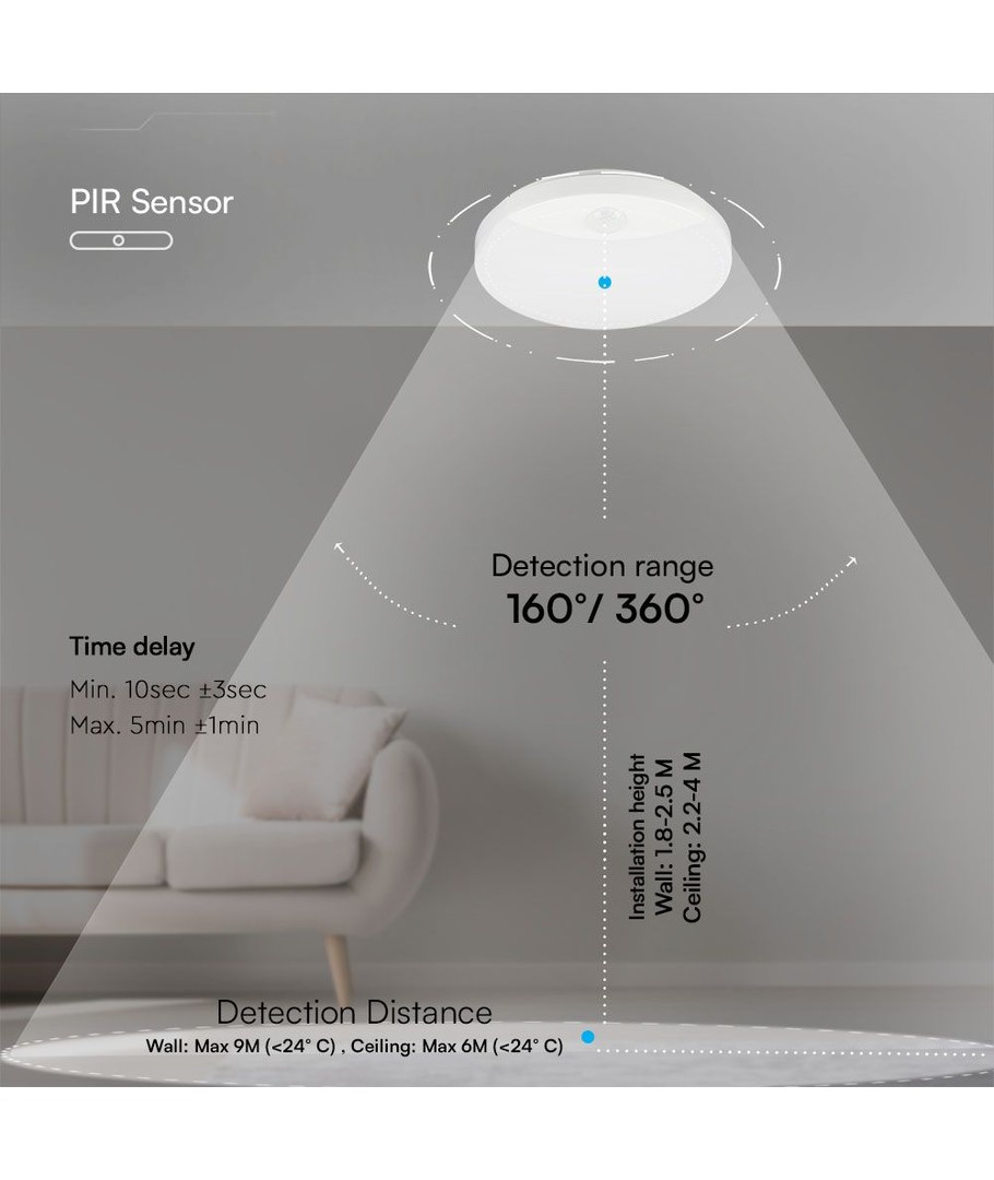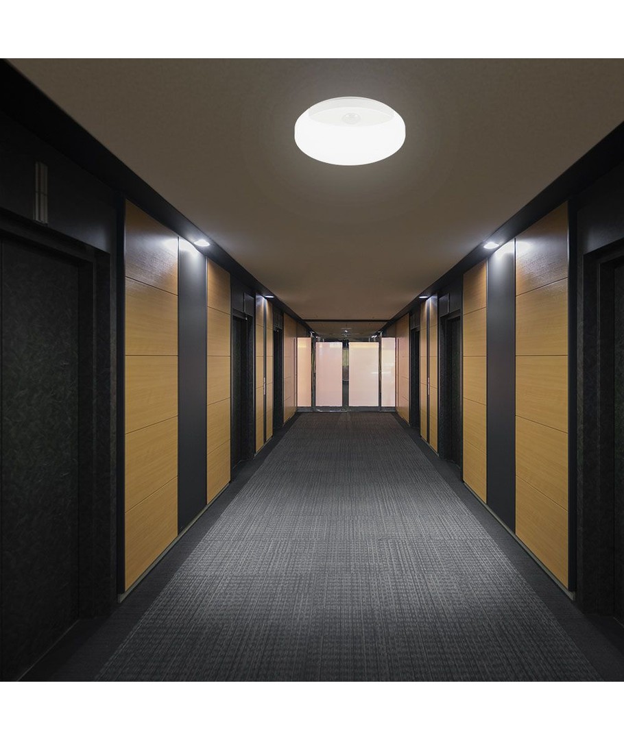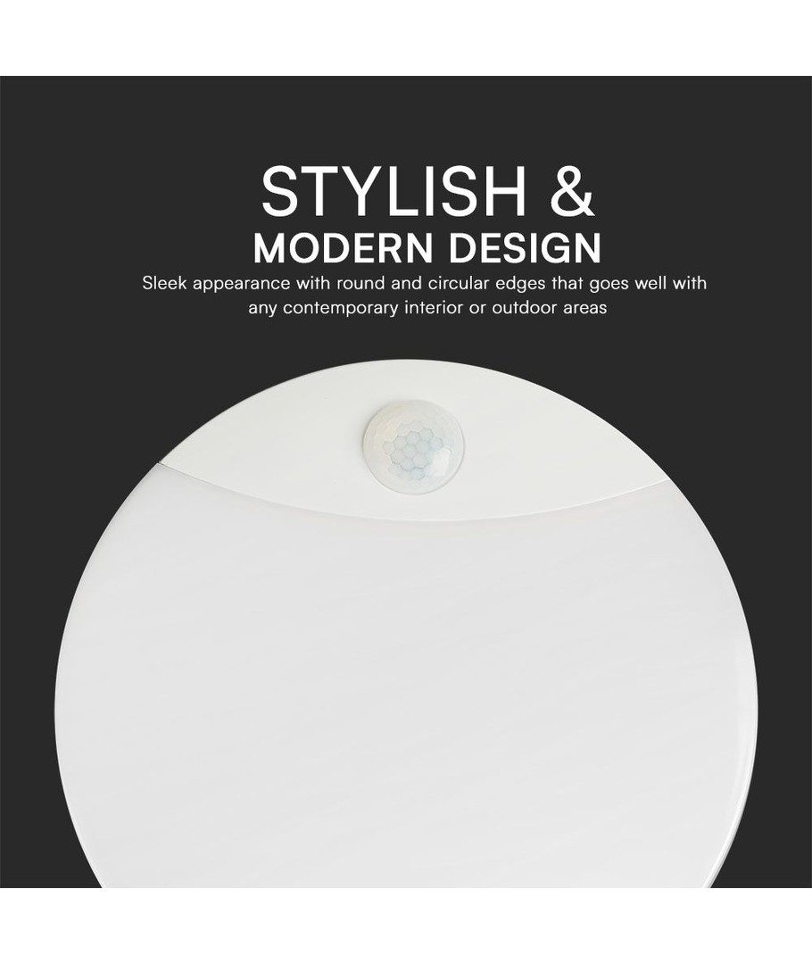 Lampan har ett vitt hölje som smälter in i de flesta miljöer samtidigt som den erbjuder en ljusstyrka som är perfekt för att lyfta fram färger på ett naturligt sätt. Den är utrustad med en PIR-sensor som automatiskt reagerar på rörelser, vilket gör den både energieffektiv och praktisk.