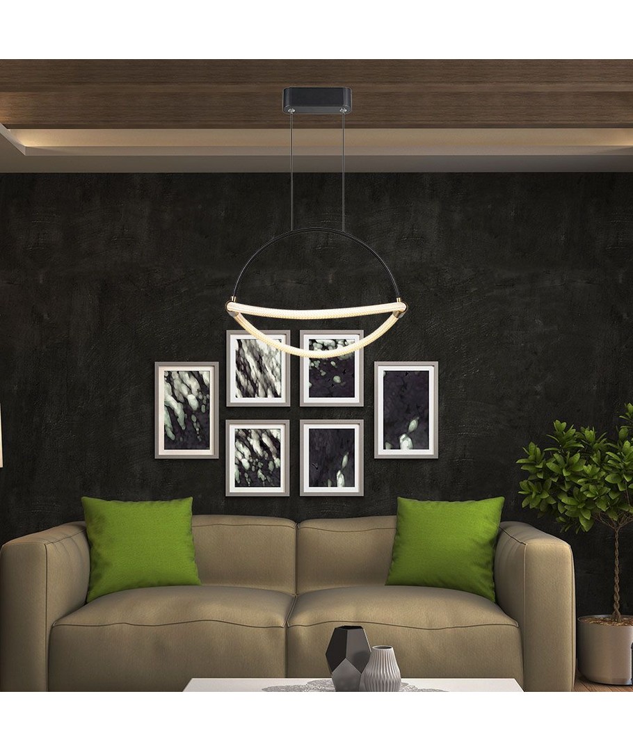 Detta pendelljus kombinerar modern design med hög funktionalitet. Med sin starka ljusstyrka och breda ljusspridning är det ett pålitligt val för de flesta belysningsbehov. Den integrerade ljuskällan gör det enkelt att installera och njuta av det perfekta ljuset i ditt hem eller kontor.