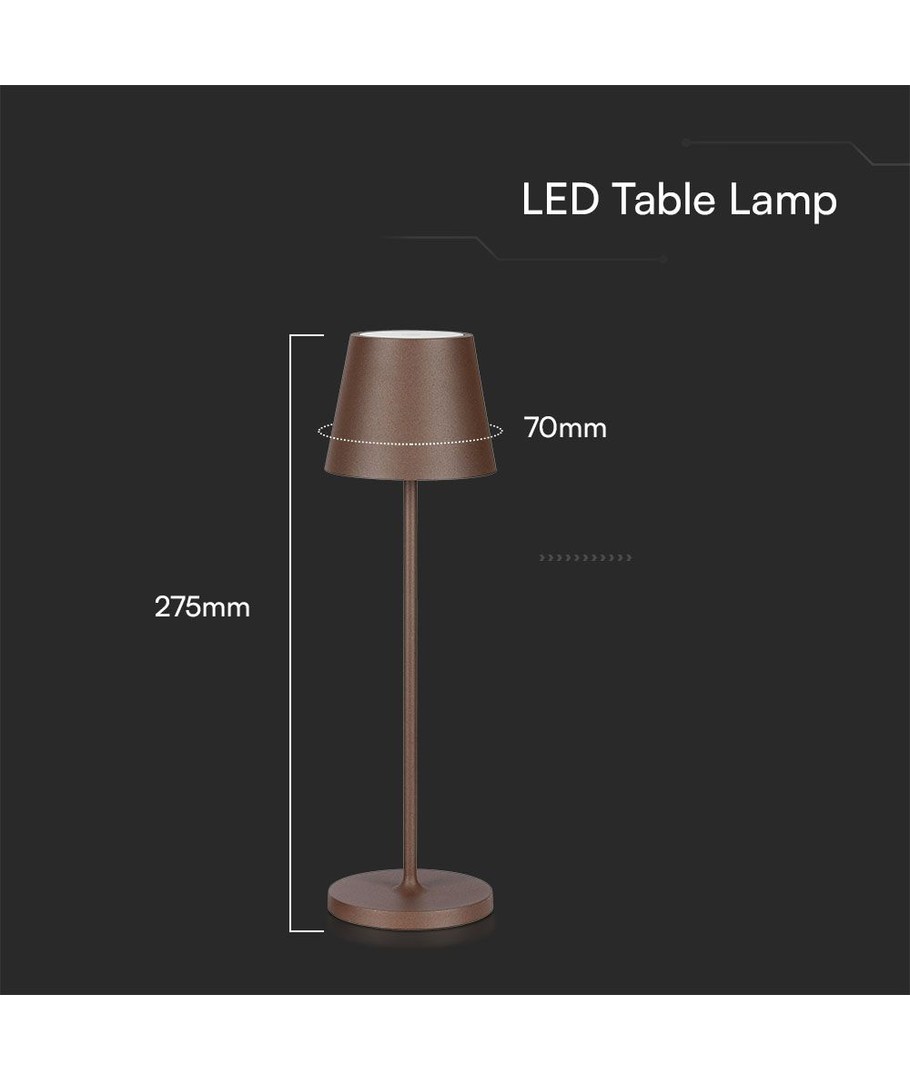 Lampan har en ljusstyrka på 150 lumen och en bred spridning på 180 grader, vilket säkerställer att ljuset distribueras jämnt över alla ytor. Med dess kompakta dimensioner på 275 x 70 mm passar den utmärkt på mindre bord eller hyllor.