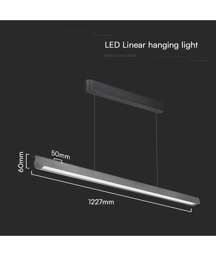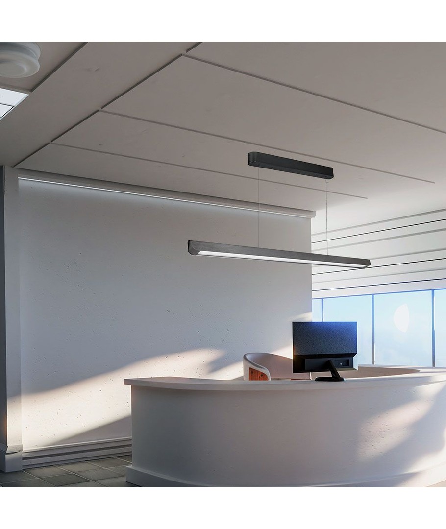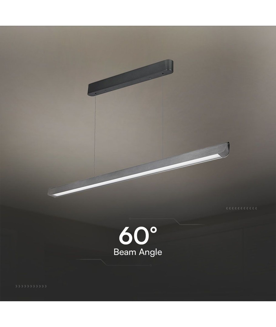 Denna eleganta linjära hängpendellampa kombinerar stil och funktionalitet för att försköna och effektivisera belysningen i alla utrymmen. Lampan är designad för att ge en jämn ljusfördelning tack vare sin ljusstyrka på 2880 lm och en bred spridning på 100 grader.