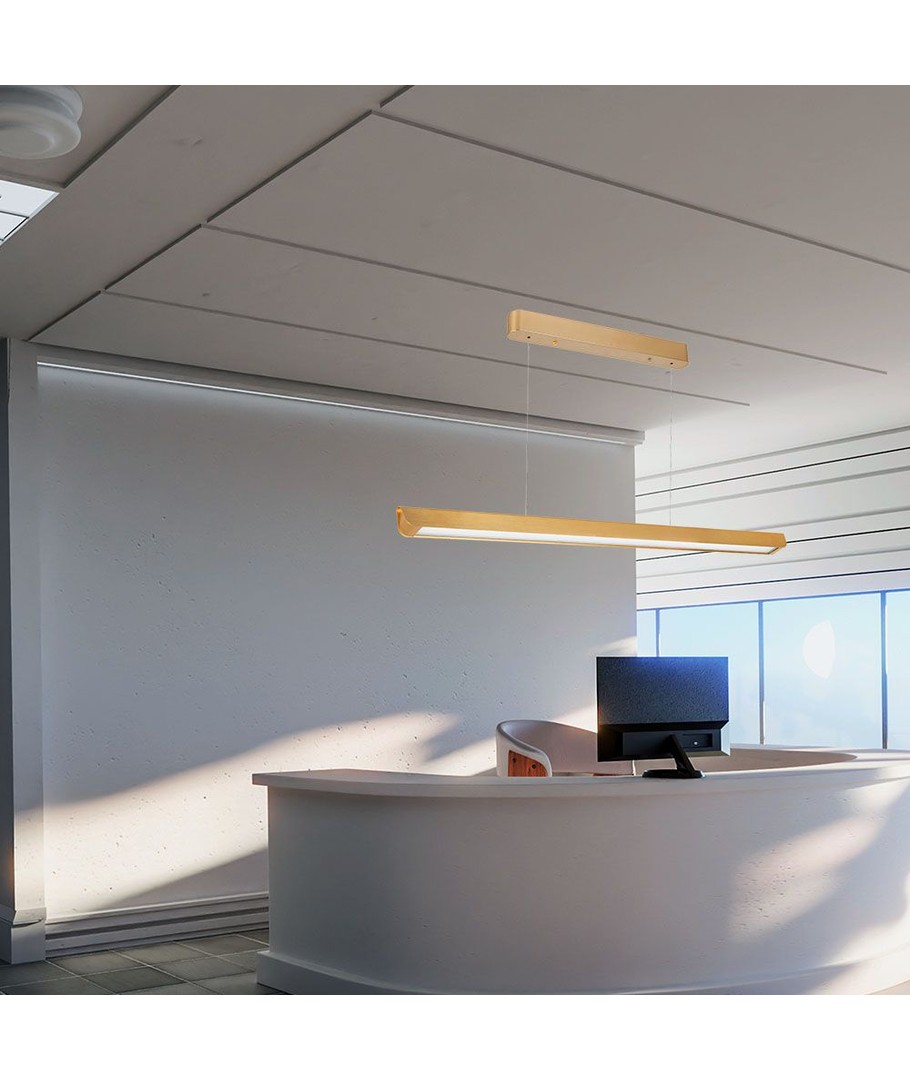 Denna linjära hänglampa kombinerar det bästa av design och funktionalitet. Med sin stilrena guldfärg passar den perfekt i moderna miljöer där den kan bli ett centralt designelement eller diskret smälta in beroende på din inredningsstil. Observera att lampan har en kapslingsklass IP20 och är därmed inte avsedd för användning i fuktiga utrymmen.