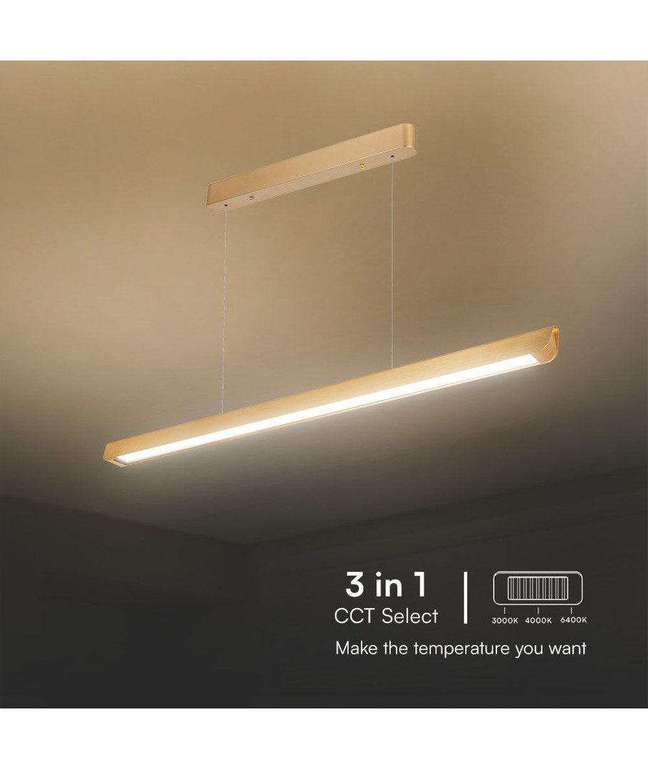 Ge ditt hem eller din arbetsplats ett stilfullt och modernt uttryck med denna 36W linjära LED-hänglampa i en elegant guldfinish. Med sin diskreta design och kraftfulla ljusstyrka är denna lampa den perfekta lösningen för många olika miljöer.