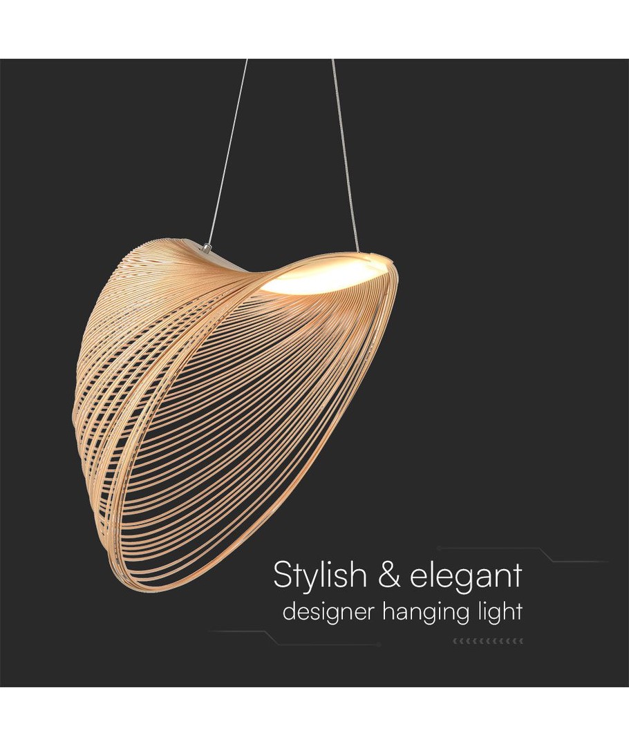 Skapa en trevlig och inbjudande atmosfär med denna stilfulla LED Designer Pendellampa som är perfekt för både moderna och klassiska inredningar. Med sin träfärg ger lampan ett naturligt och varmt intryck, vilket förstärker rummet med dess naturliga skönhet.