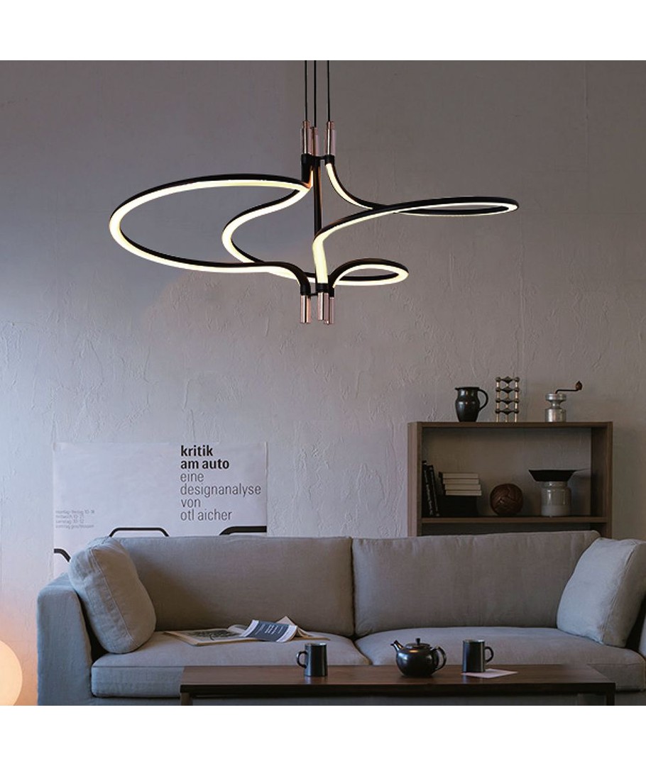 Denna lyxiga LED designer hänglampa är perfekt för att ge ditt hem ett stilfullt och modernt utseende. Den vackert guldpläterade designen med ett svart hus ger en touch av elegans till varje rum.