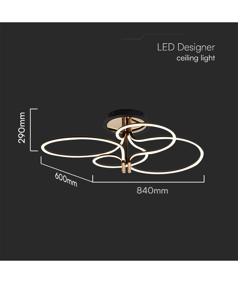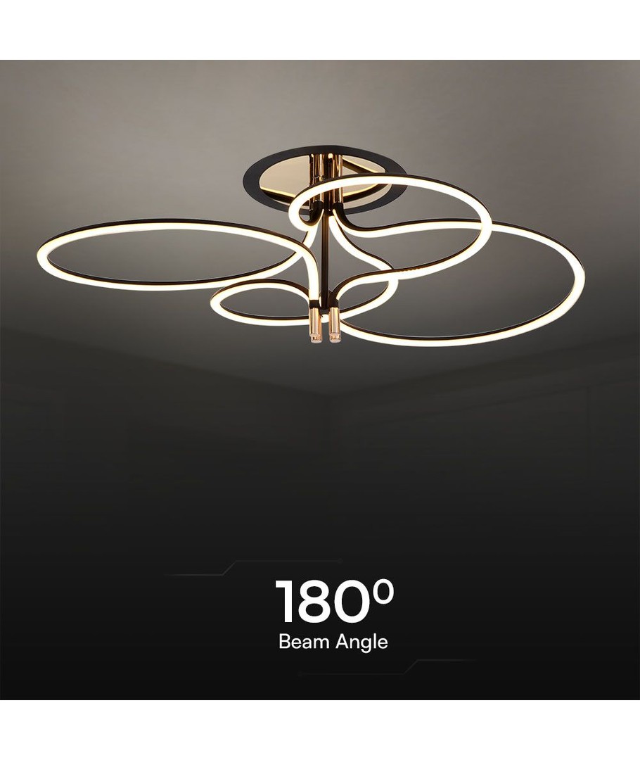 Denna elegant utformade lampa har en guldbelagd och svart finish som ger en lyxig touch till ditt hem eller kontor. Den breda spridningen på 180 grader säkerställer att ljuset fördelas jämnt i rummet, vilket skapar en harmonisk och behaglig atmosfär.