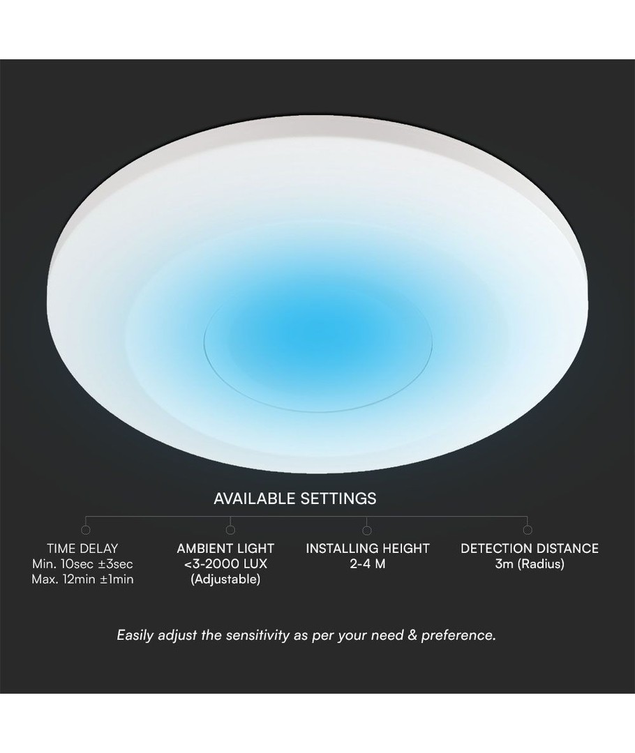 | Yderligere bemærkninger | Sensor distance: 3m (Radius). Ambient light level: |
