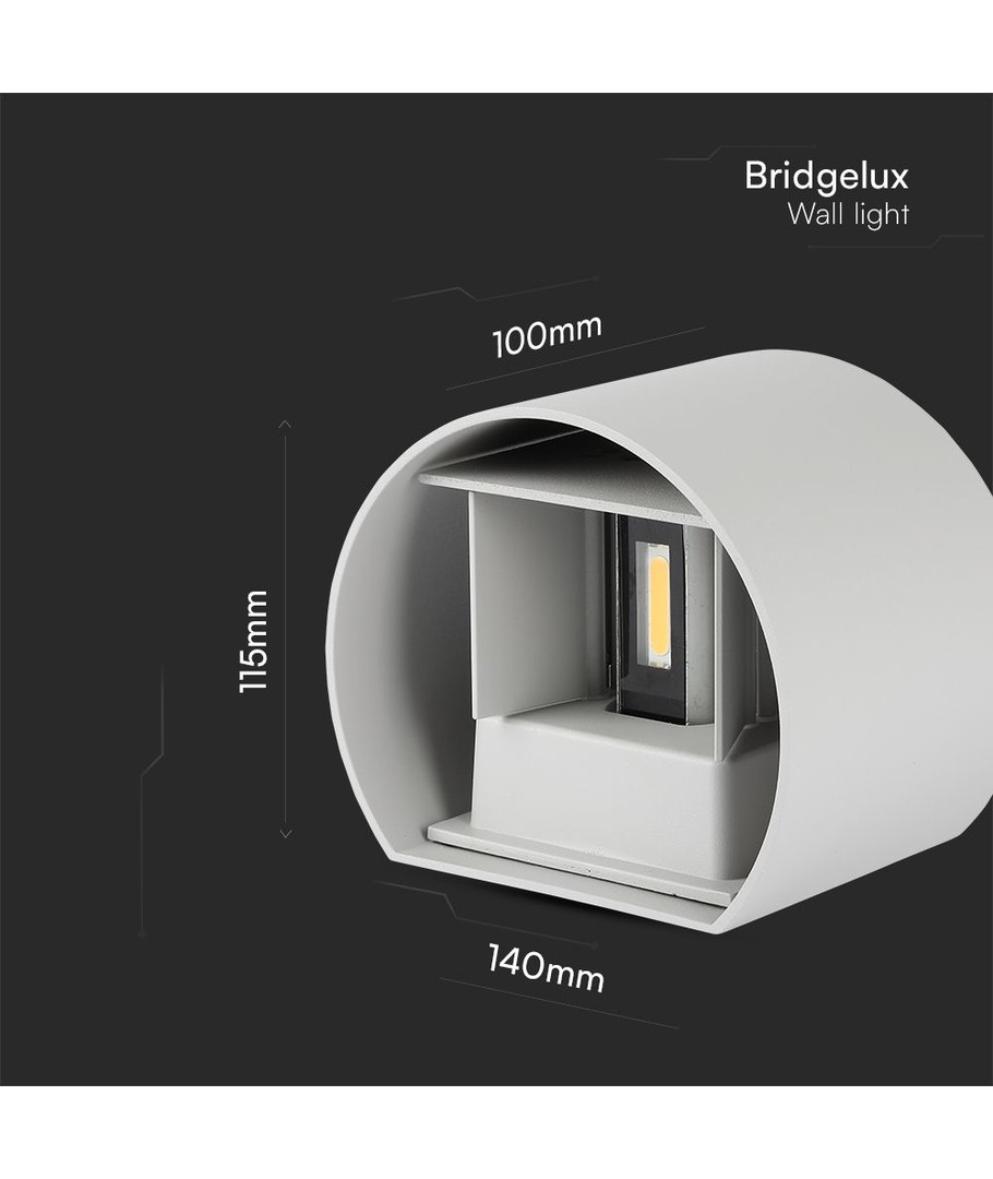 Vägglampan har dimensionerna 140 x 100 x 115 mm och är designad för att stå emot elementen. Med en IP65-gradering är den skyddad mot vattenstänk och regn, vilket gör den perfekt även för utomhusbruk. Dess integrerade ljuskälla garanterar dig en långvarig och pålitlig belysningslösning.