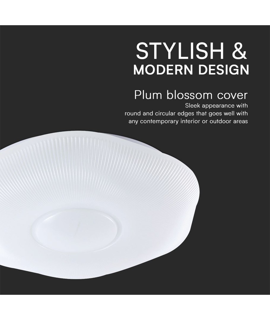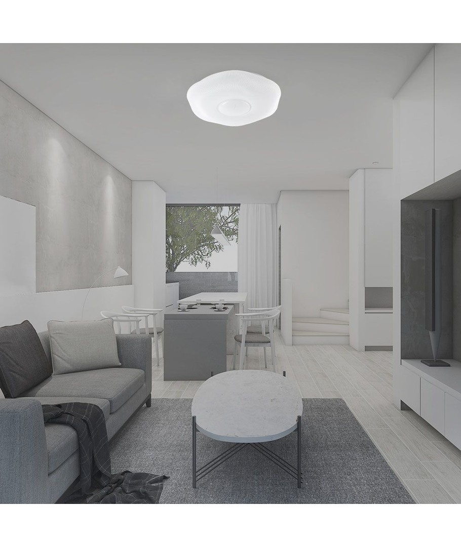 Med en imponerande effekt på 40W och en ljusstyrka på 4000 lm är denna lampa kraftfull nog att lysa upp stora ytor. Denna kupollampa har en integrerad ljuskälla, vilket eliminerar behovet av att byta glödlampor, och erbjuder hållbar och långvarig belysning.