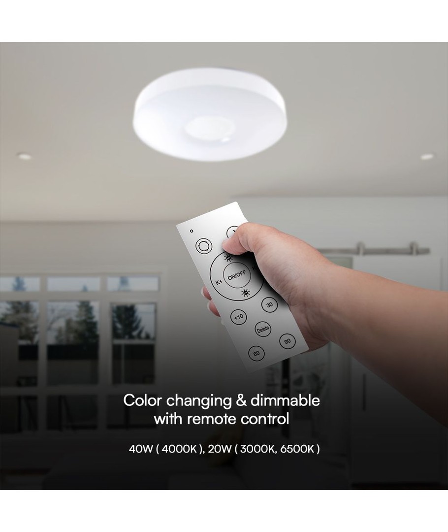 Lampan har tre justerbara effektnivåer: 20W, 40W, vilket gör det möjligt för dig att anpassa mängden ljus som behövs i rummet för olika tillfällen. LJusstyrkan på 4000 lm garanterar att ditt utrymme är optimalt belyst utan att kompromissa med energieffektiviteten.