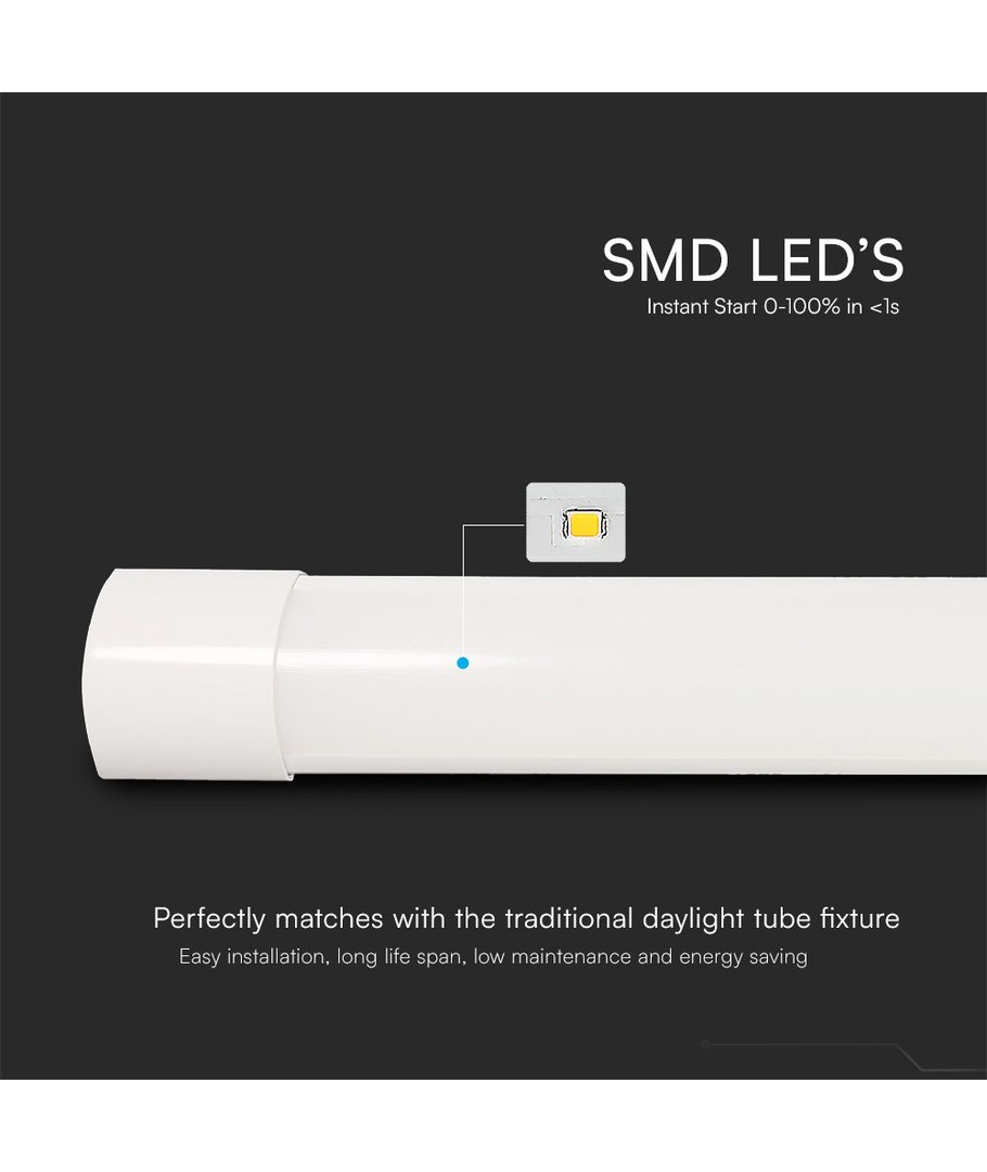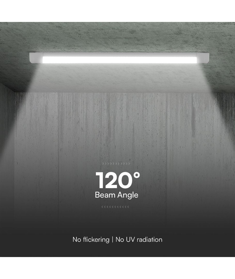Denna lampa erbjuder en effekt på 40W och är idealisk för att belysa stora utrymmen med sina generösa dimensioner på 1166 x 24 x 76 mm. Med en imponerande ljusstyrka på 4800 lm säkerställer den att varje hörn av ditt utrymme fylls med klart och effektivt ljus.