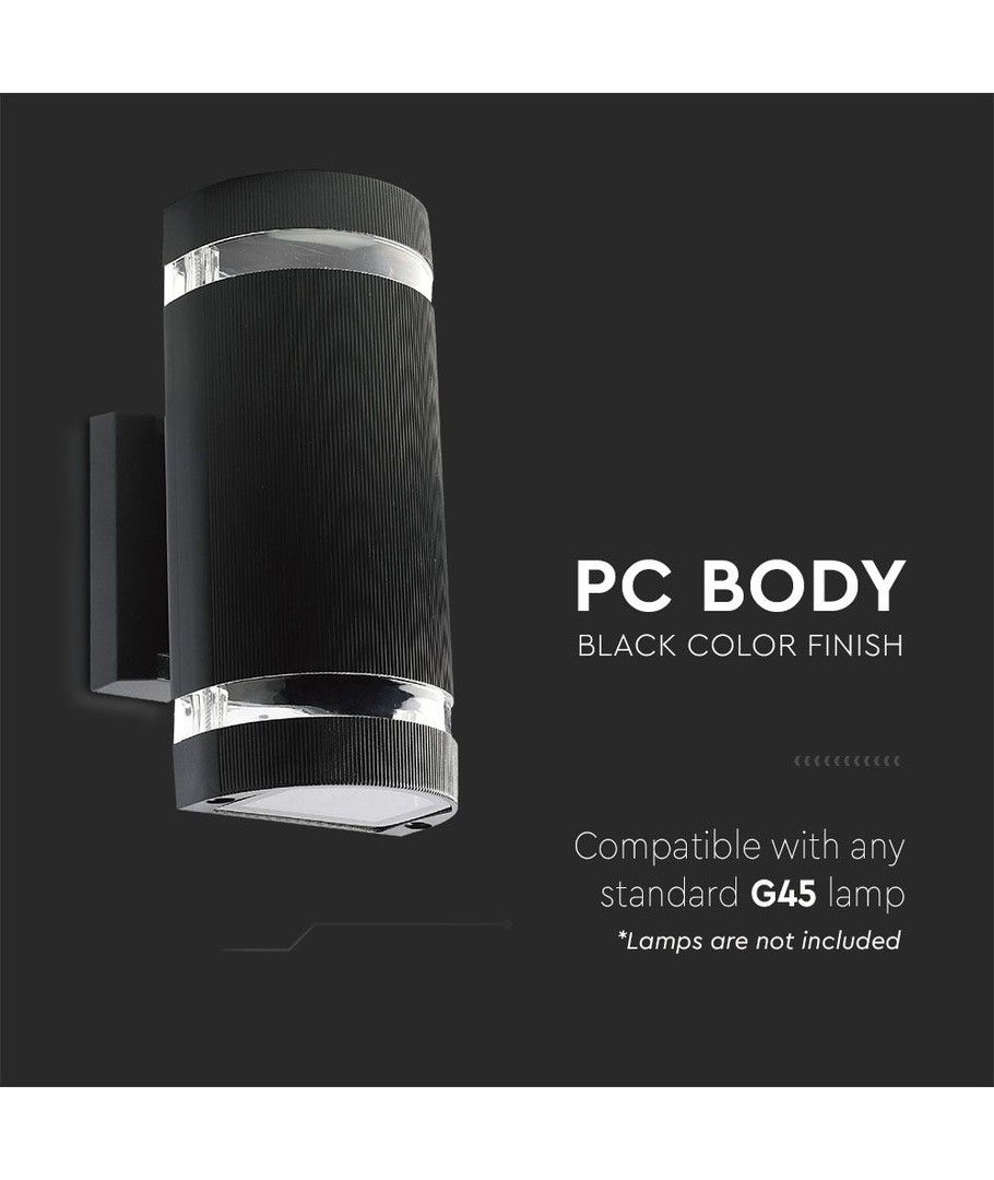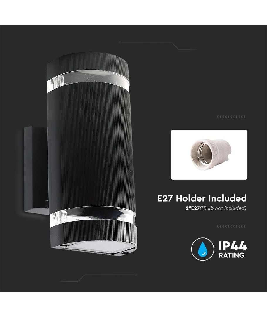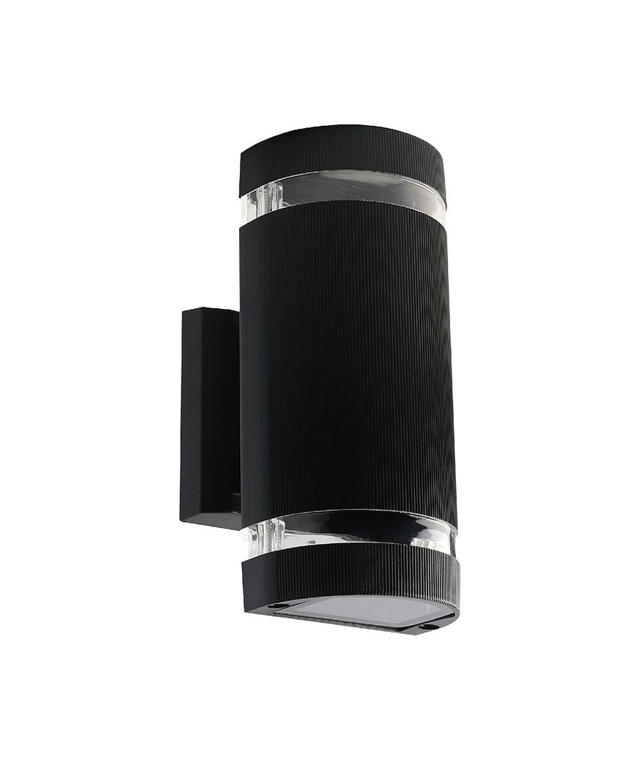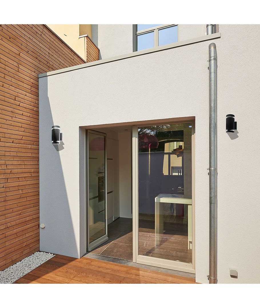 Denna moderna LED-vägglampa i svart färg kombinerar stil och robusthet, perfekt för både inomhus- och utomhusmiljöer.