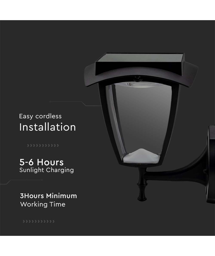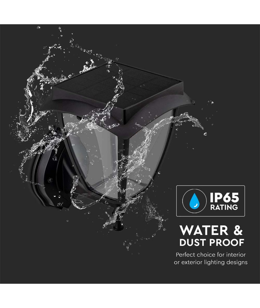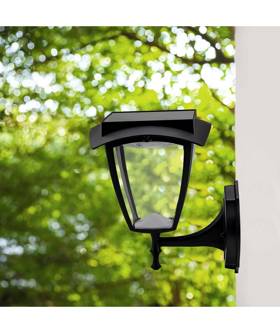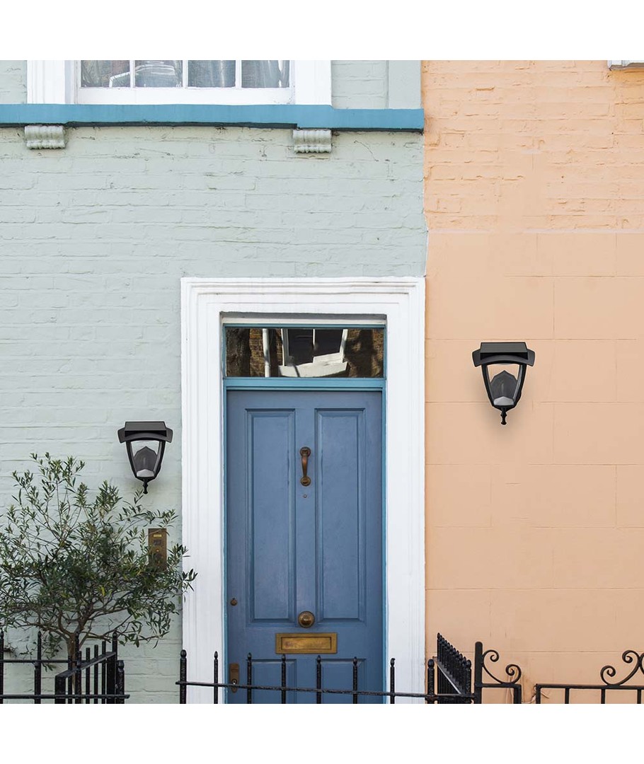 Denna moderna LED solcellsvägglampa kombinerar stil med funktionalitet för att lysa upp din utomhusmiljö.