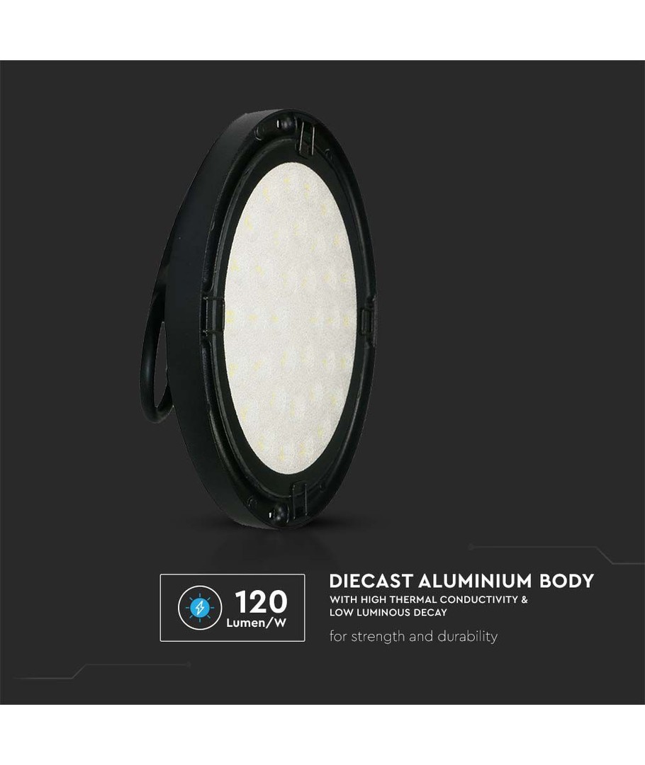 Den integrerade ljuskällan gör installationen enkel och bekymmersfri, vilket sparar tid och ansträngning vid uppsättning. Välj denna LED highbay för en hållbar, effektiv och tillförlitlig belysningslösning som möter alla dina krav.
