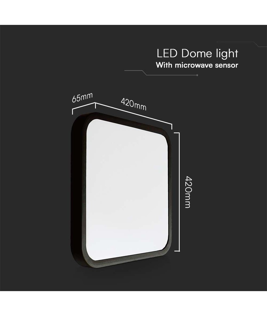Denna LED Dome Lampa kombinerar stil och funktion med en fyrkantig design och svart ram, vilket ger en elegant och modern känsla till varje miljö. Utrustad med en mikrovågssensor för effektiv och intelligent belysning.