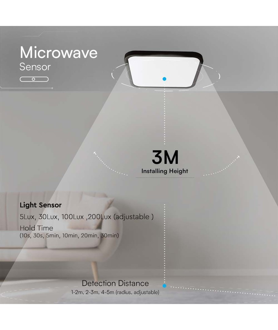 Den inbyggda mikrovågssensorn förbättrar energieffektiviteten genom att automatiskt justera belysningen efter behov, vilket minskar energiförbrukningen utan att kompromissa med ljuskvaliteten.