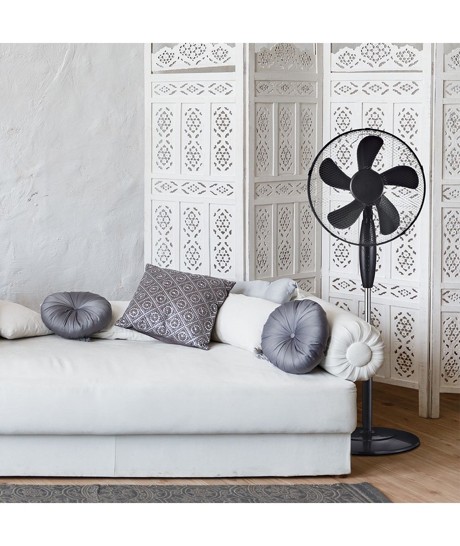 55W Stålfläkt erbjuder effektiv kylning och stabilitet med en robust rund fot och kraftfulla knappar.