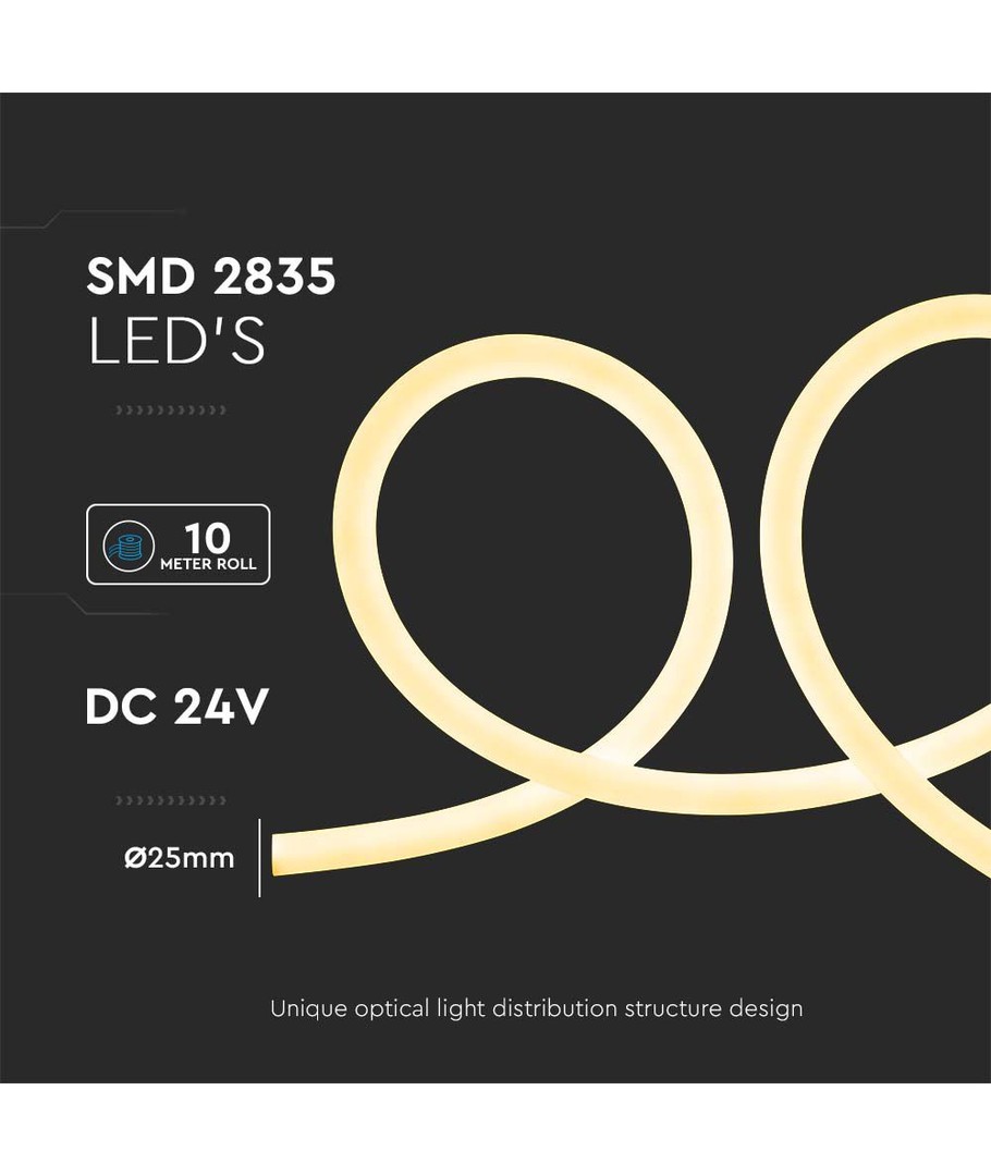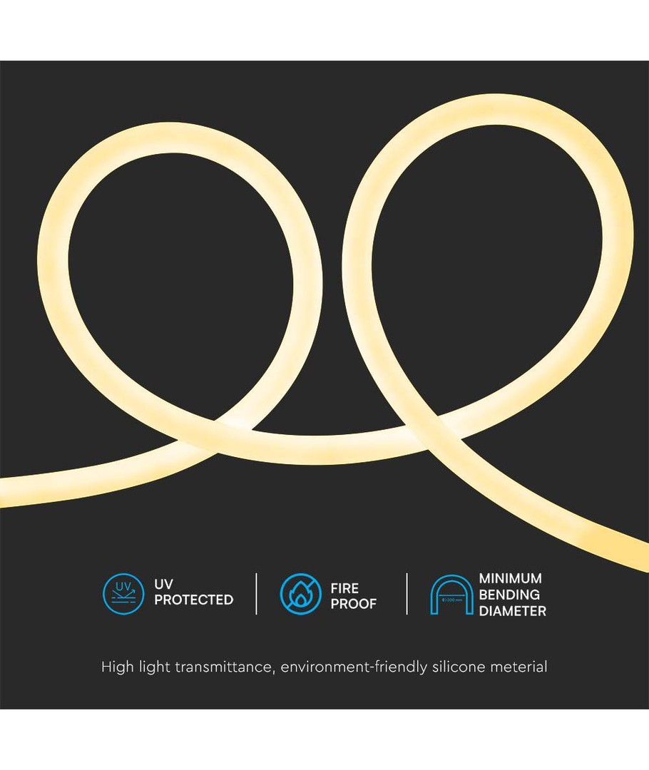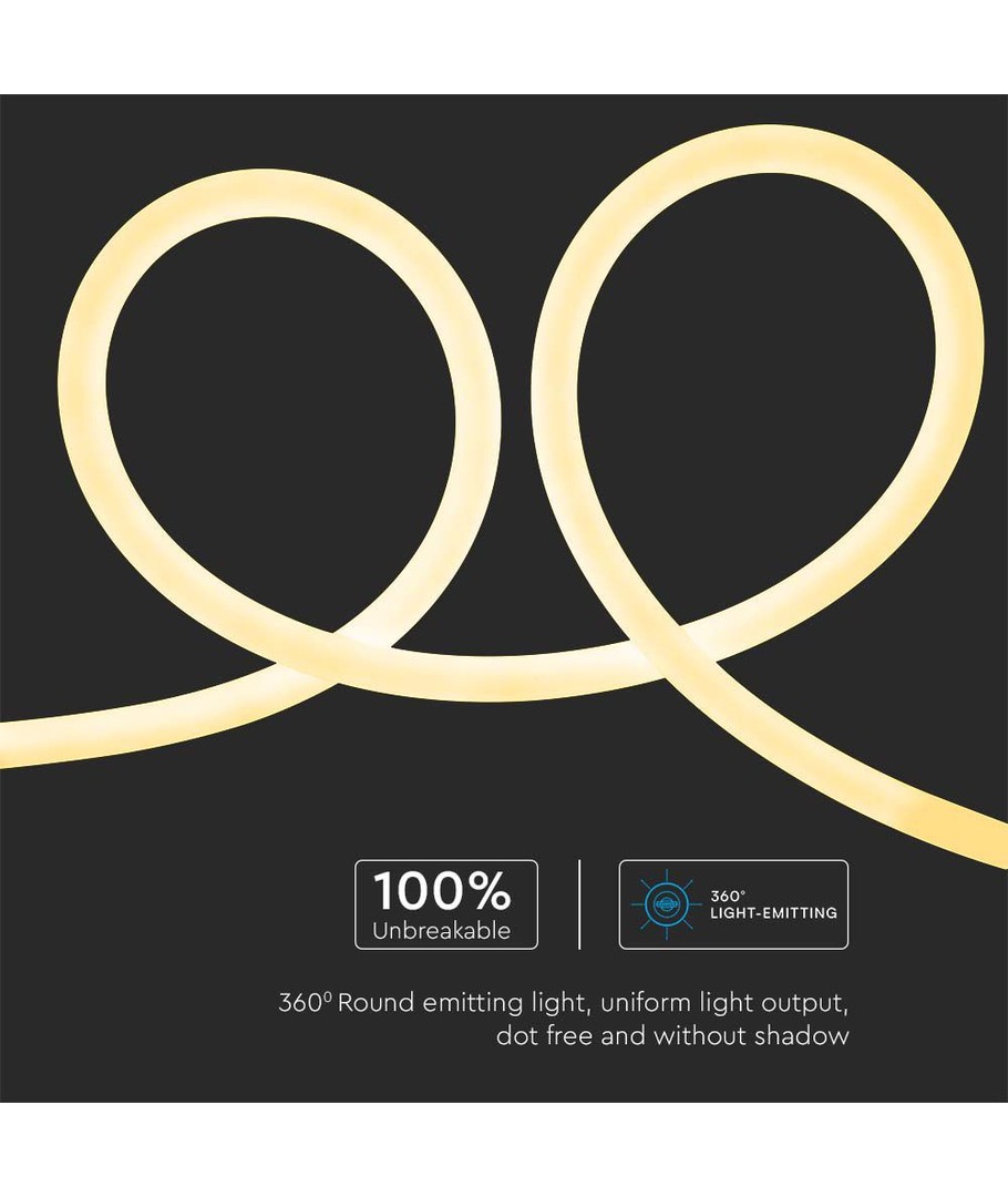 Letar du efter ett flexibelt ljusalternativ som ger en bred spridning på 360 grader? Då är detta Neon Flex-band något för dig. Med en kapacitet på 12W/m och en längd på 10 meter per rulle, är det idealiskt för en rad olika inomhusapplikationer.