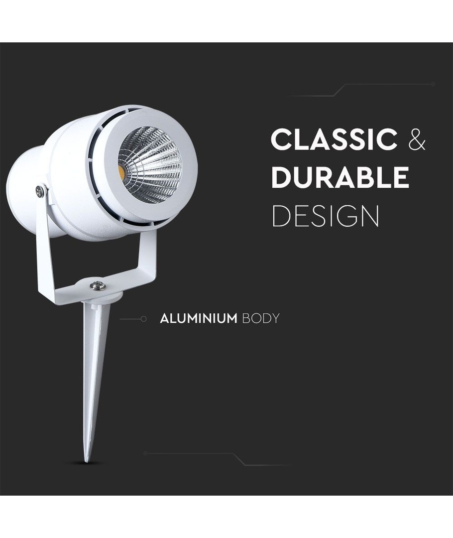 Denna lampa med sitt jordspjut gör installationen enkel och flexibel. Oavsett om du behöver belysa en gångstig, en trädgårdsdetalj eller en uteplats, ger VT-857 tillräckligt med ljus och kvalitet för att matcha de flesta behov. Dess förmåga att framhäva naturliga färger gör den också idealisk för upplysning av trädgårdsdekorationer eller växtlighet.