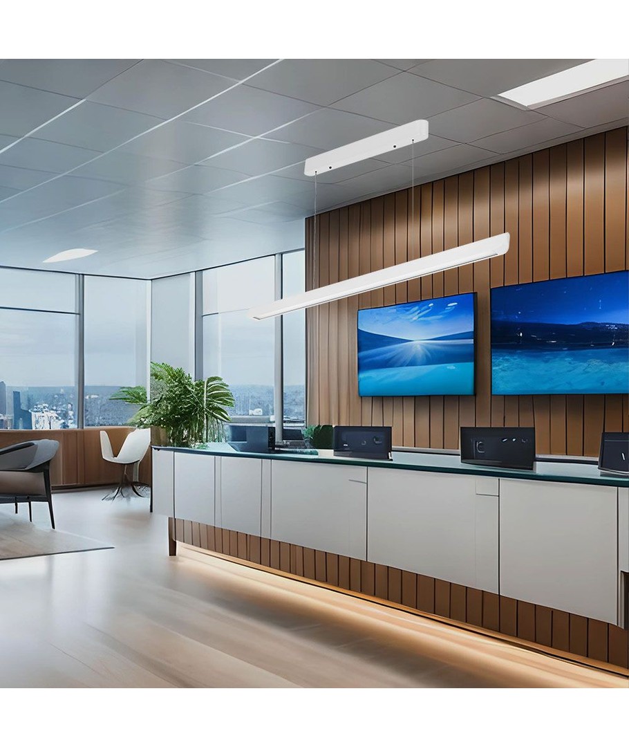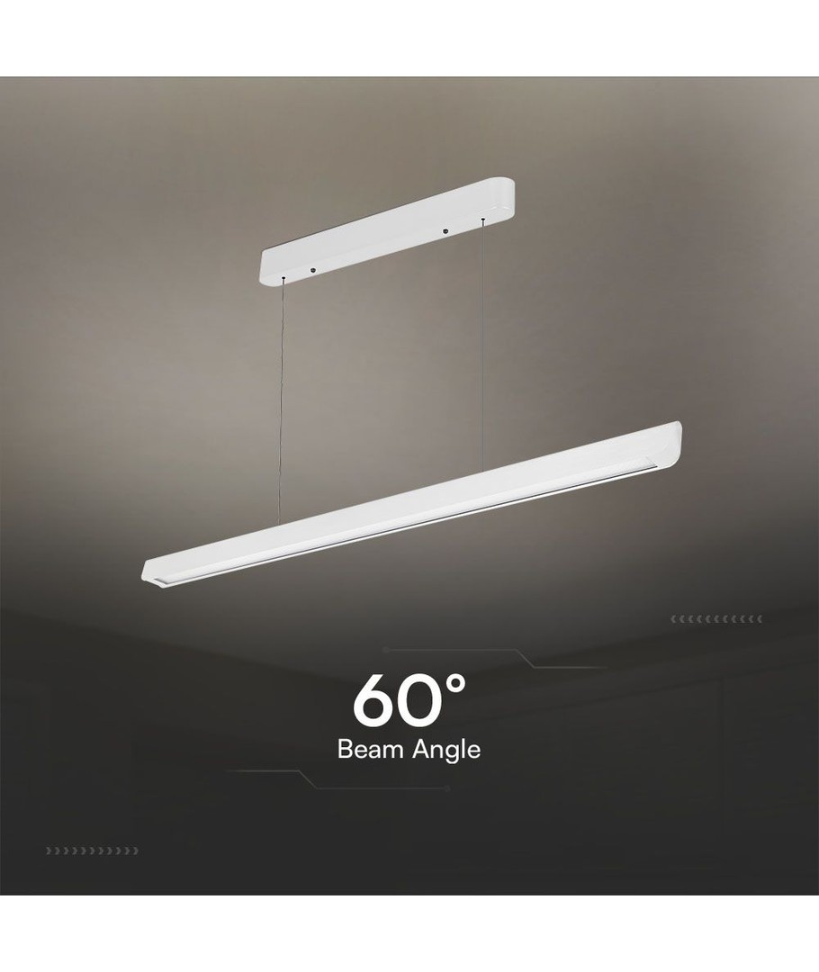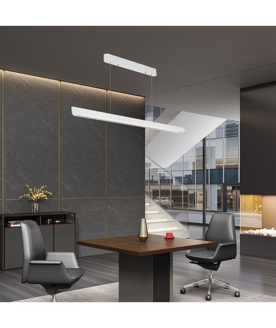 Den linjära hängande LED-lampan erbjuder en modern och effektiv belysningslösning. Med en elegant vit design och en diffusorplatta typ 3i1, passar den in i både hem och kontor.